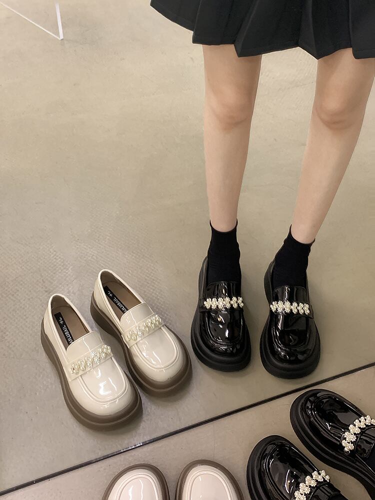 サマーオータムパールラインストーンレザー 靴 シューズ ローファー 夏物 秋物 真珠 jxjxf7918120009