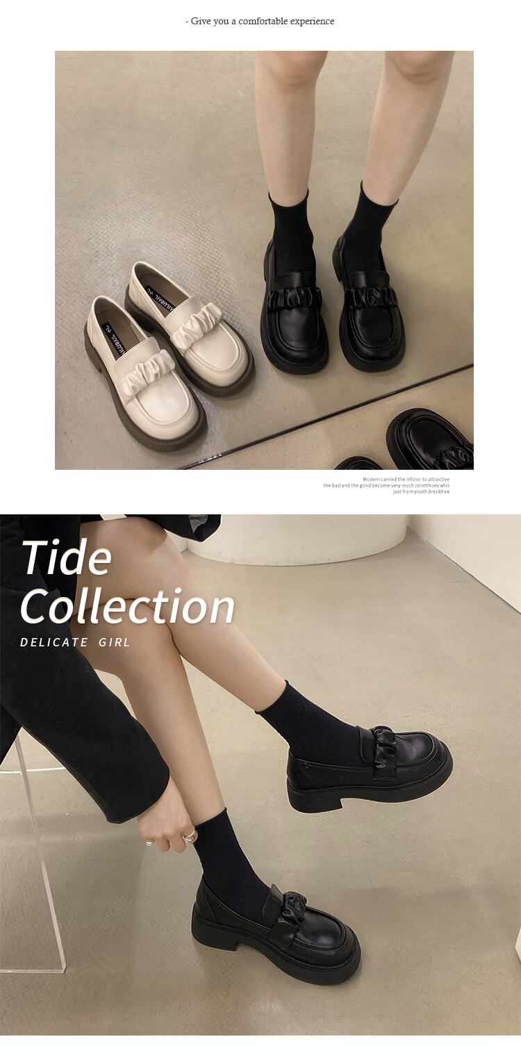 ローファーの女性の 2022 夏の新しい超ホットなファッションオールマッチ学生通勤厚いかかとノンスリップ日本の革靴 シューズ ヒール サマー 夏物 レザー jxjxf58538065619