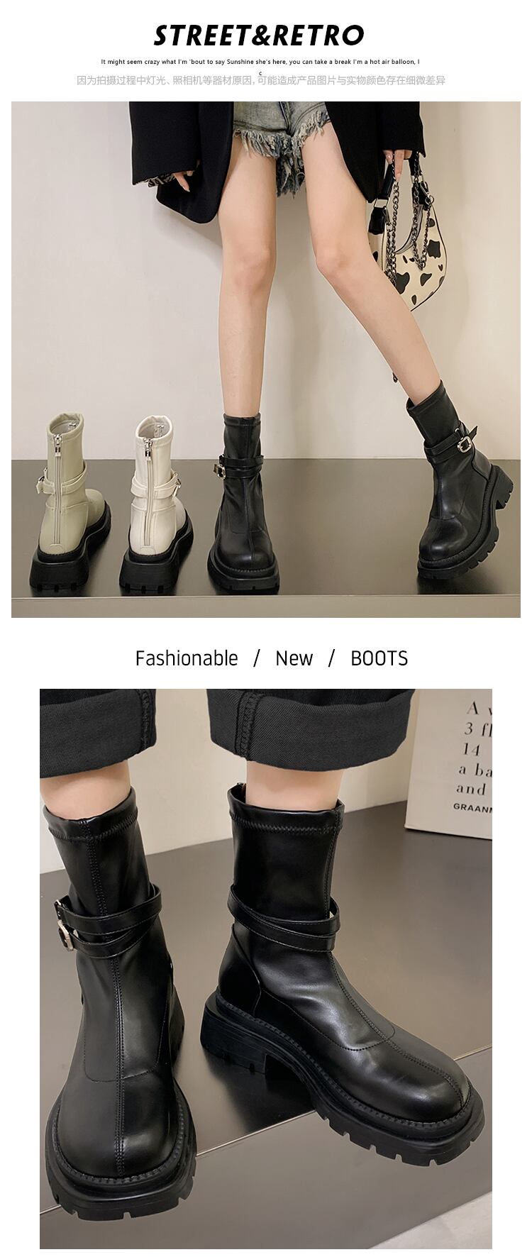 ブーツショートサマーベルト バックルスタンダードスリムスキニー レトロ 靴 シューズ 夏物 ハーネス jxjxf30823206071