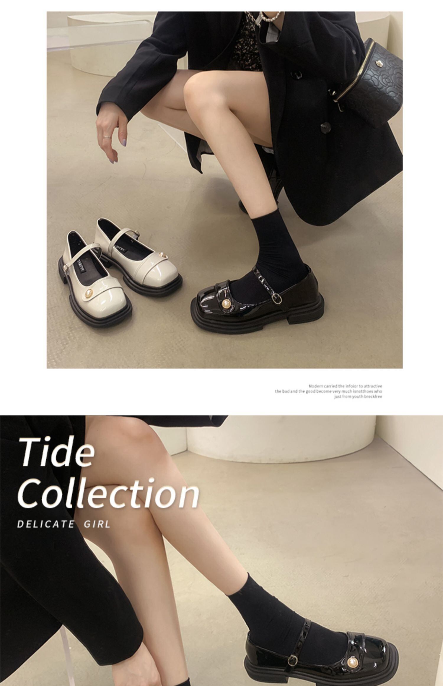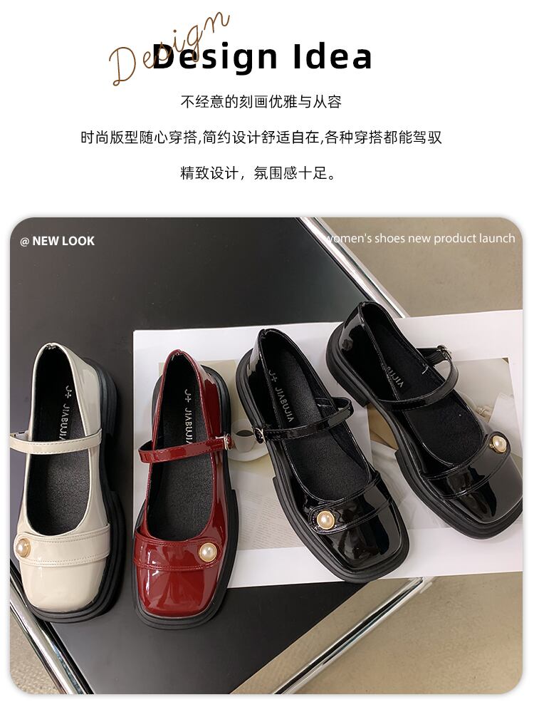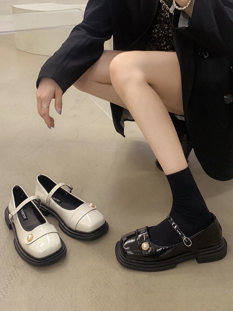 オータムスタンダードパールシングルレザー 靴 シューズ レトロ 秋物 真珠 スクウェア jxjxf32795892344