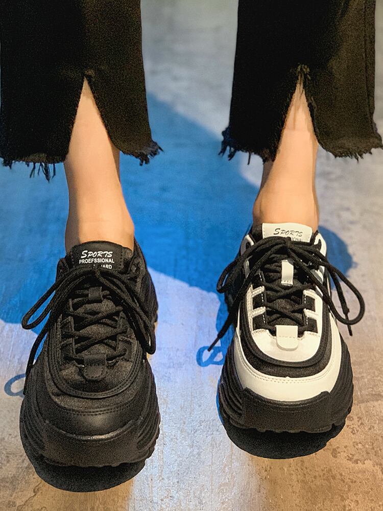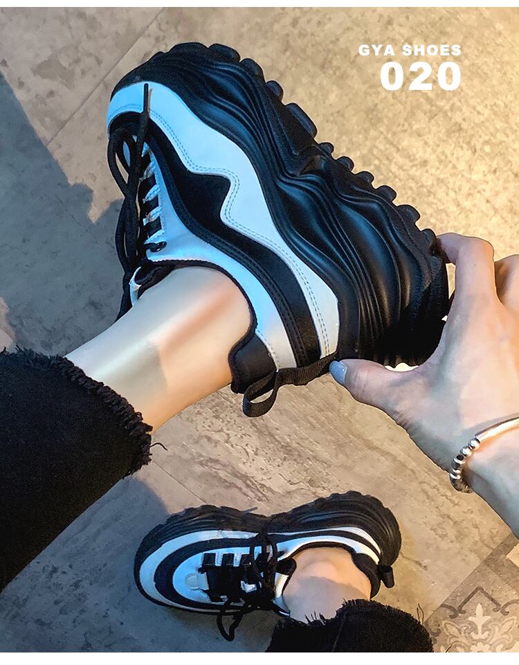 カジュアルシューズ女性の 2022 秋の新ファッション黒と白の全試合学生スポンジケーキ厚底ノンスリップスポーツお父さんの靴 ホワイト ブラック オータム 秋物 jxjxf64609188233