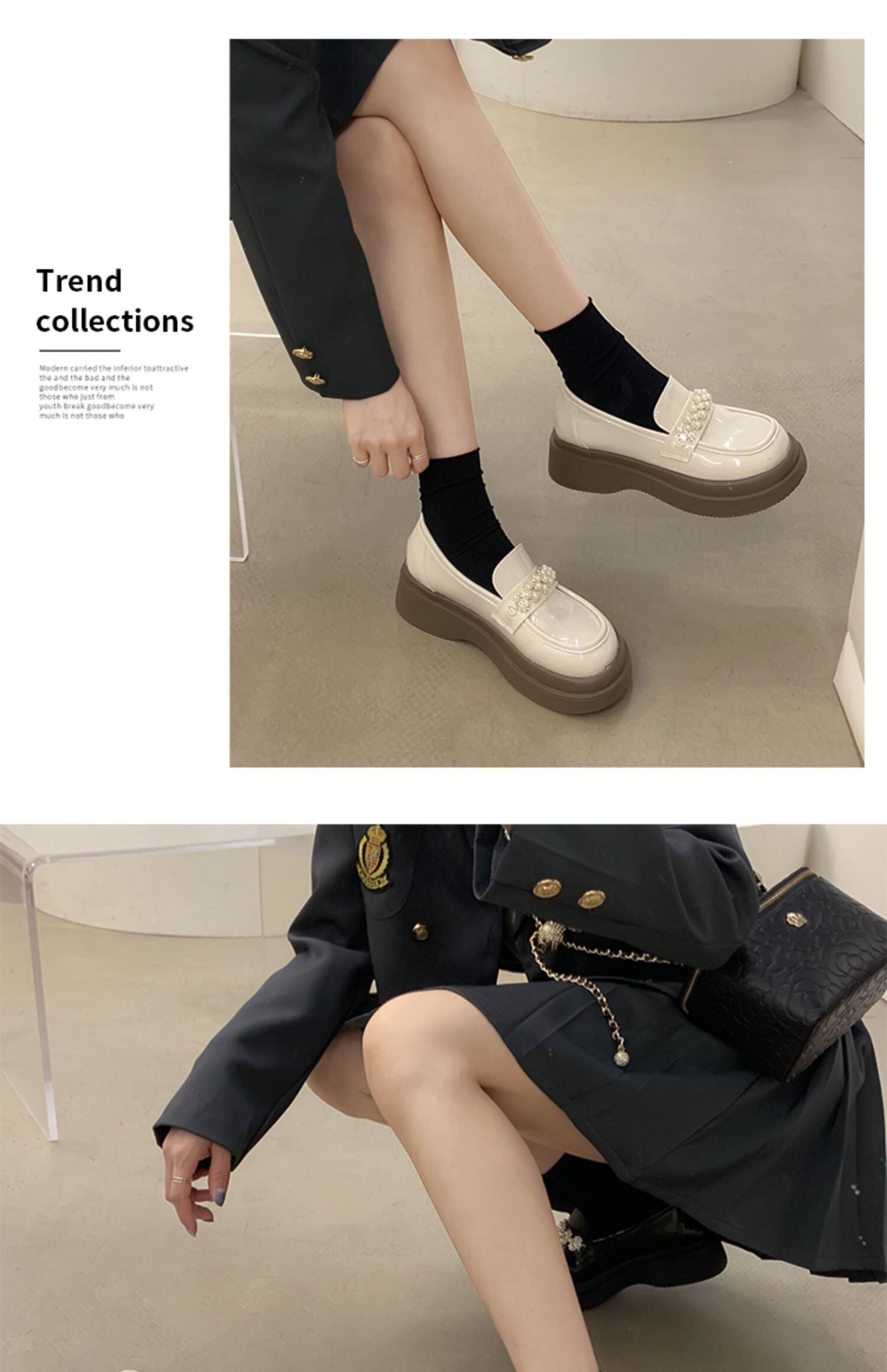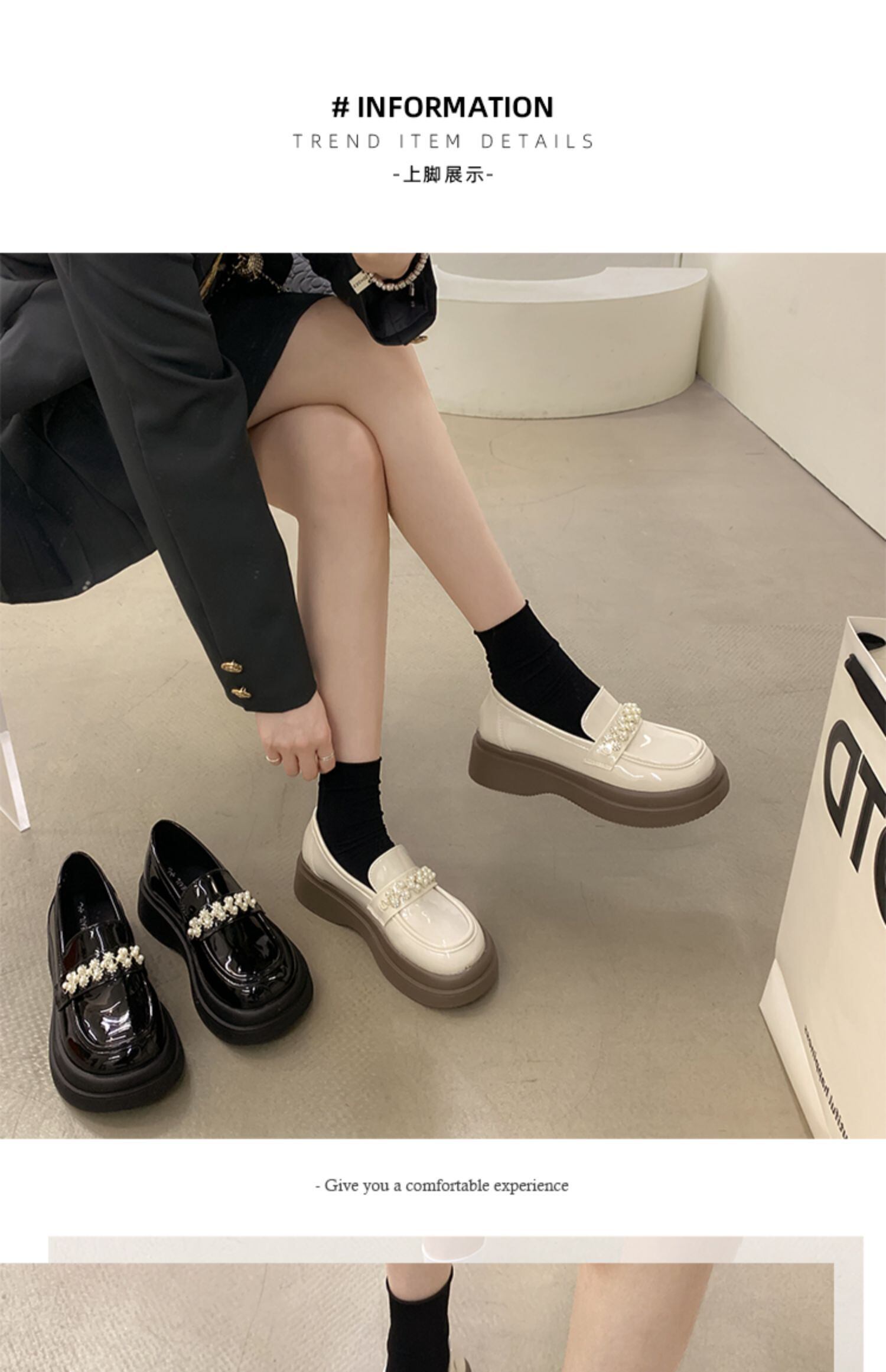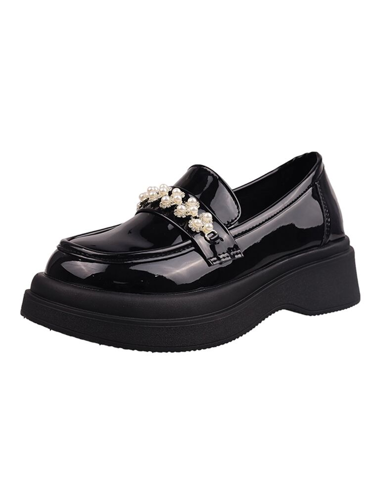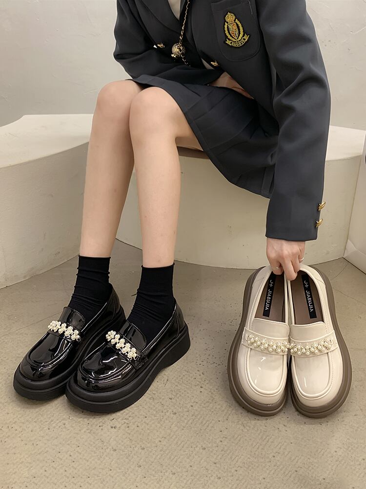 オータムパールラインストーンスプリングレザー 靴 シューズ ローファー 春物 秋物 ラウンドトー 真珠 jxjxf43447805819