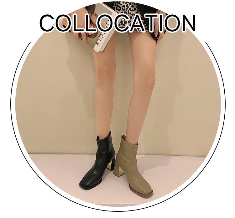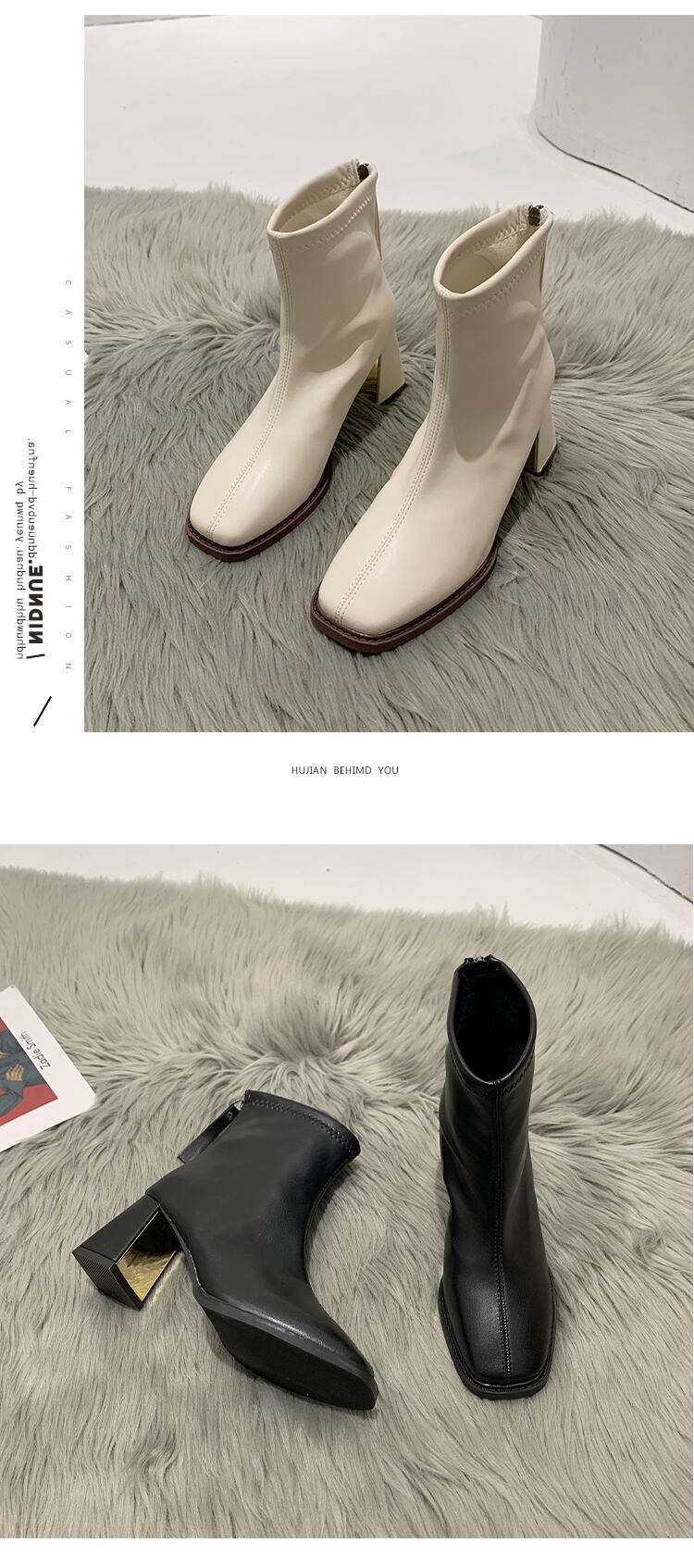 ショートブーツオータムヒールスキニー 靴 シューズ 秋物 スクウェア jxjxf54330207894