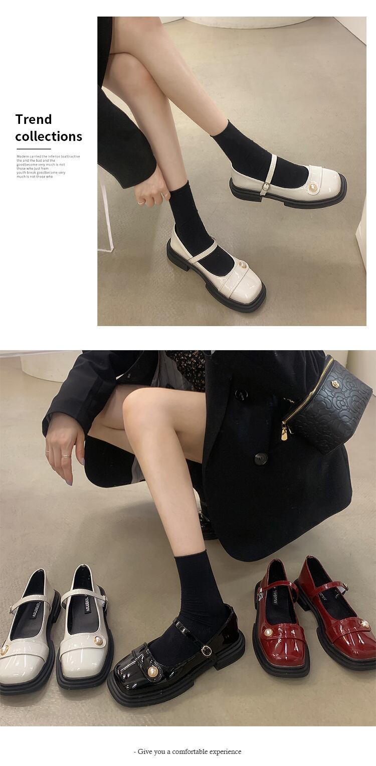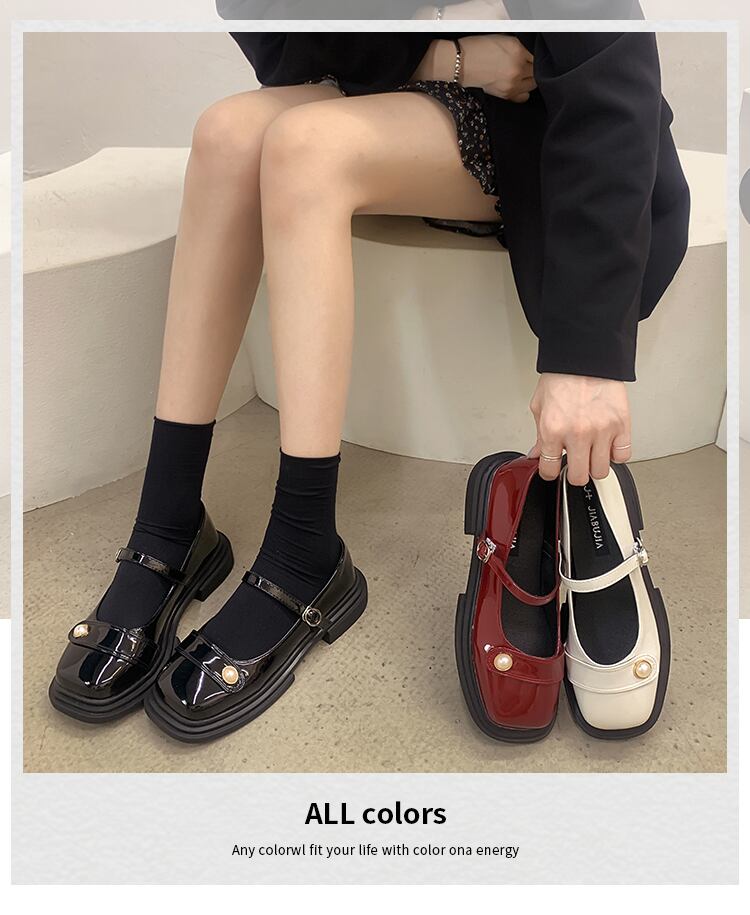 サマースタンダードパールレザー 靴 シューズ レトロ 夏物 真珠 スクウェア jxjxf22088015851