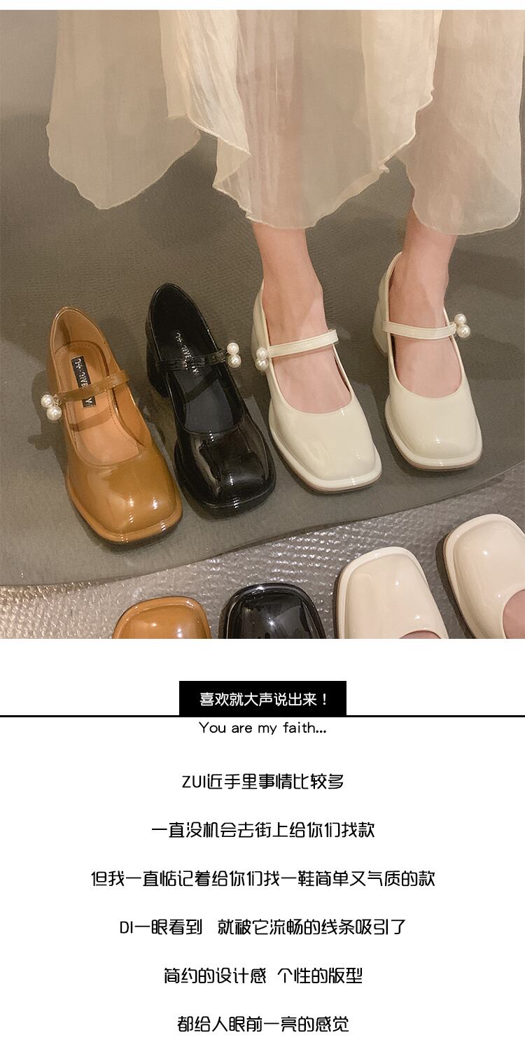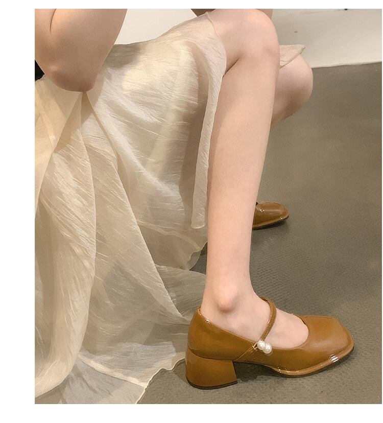 サマースタンダードパールヒール 靴 シューズ レトロ 夏物 真珠 スクウェア jxjxf90475057163