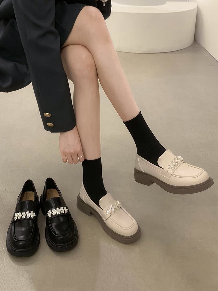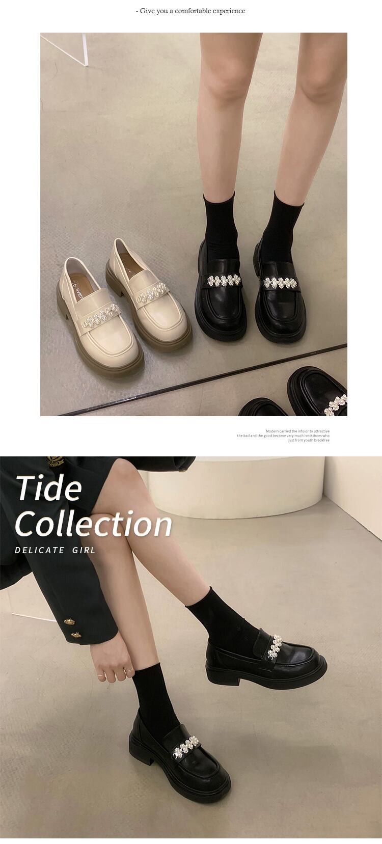 シングルサマースタイルスタンダードパールラインストーンレザー 靴 シューズ レトロ 夏物 真珠 jxjxf2994879367