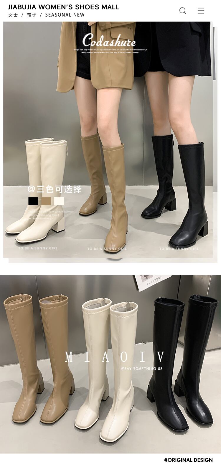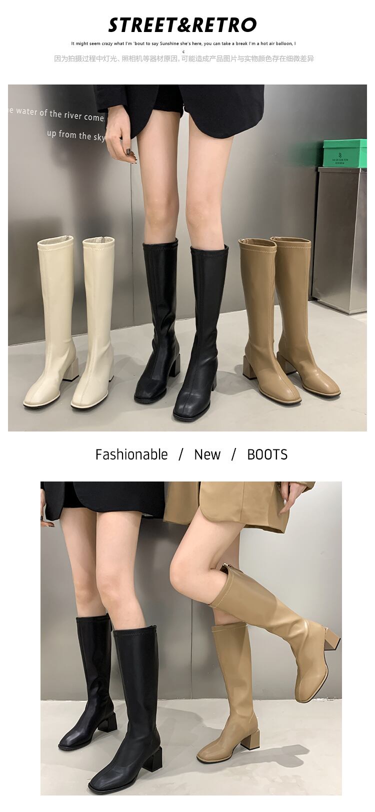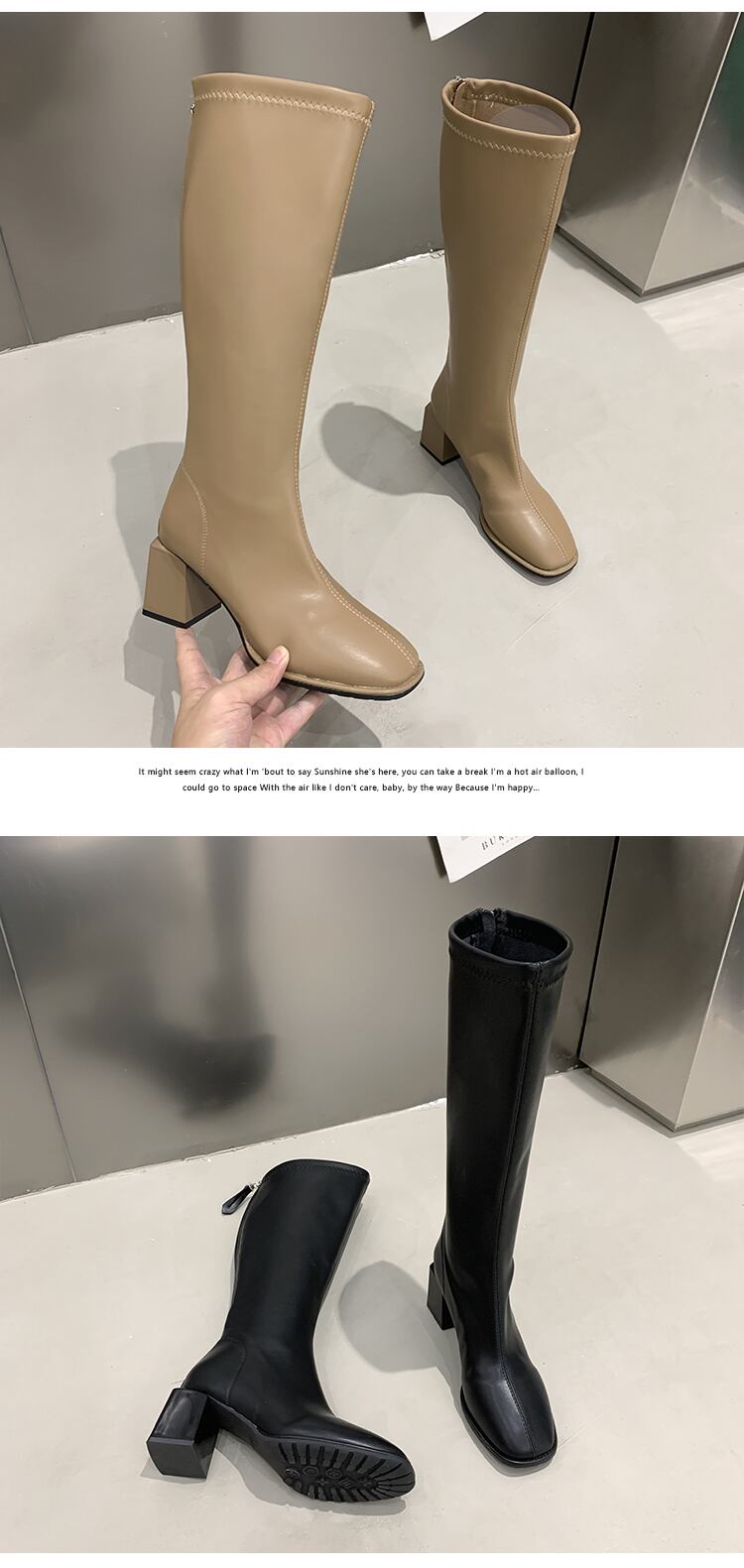 ロングブーツサマー薄手ヒールスキニー 靴 シューズ 夏物 スクウェア jxjxf50729679564