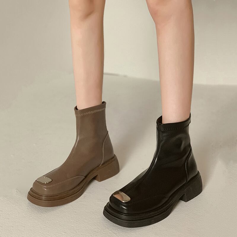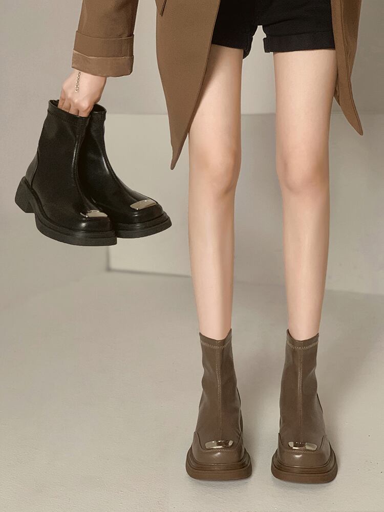 ショートブーツオータムスタイルメタルレッドスタンダードスキニー レトロ 靴 シューズ 秋物 jxjxf85704019336
