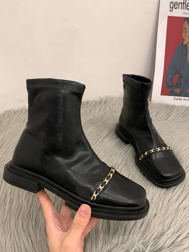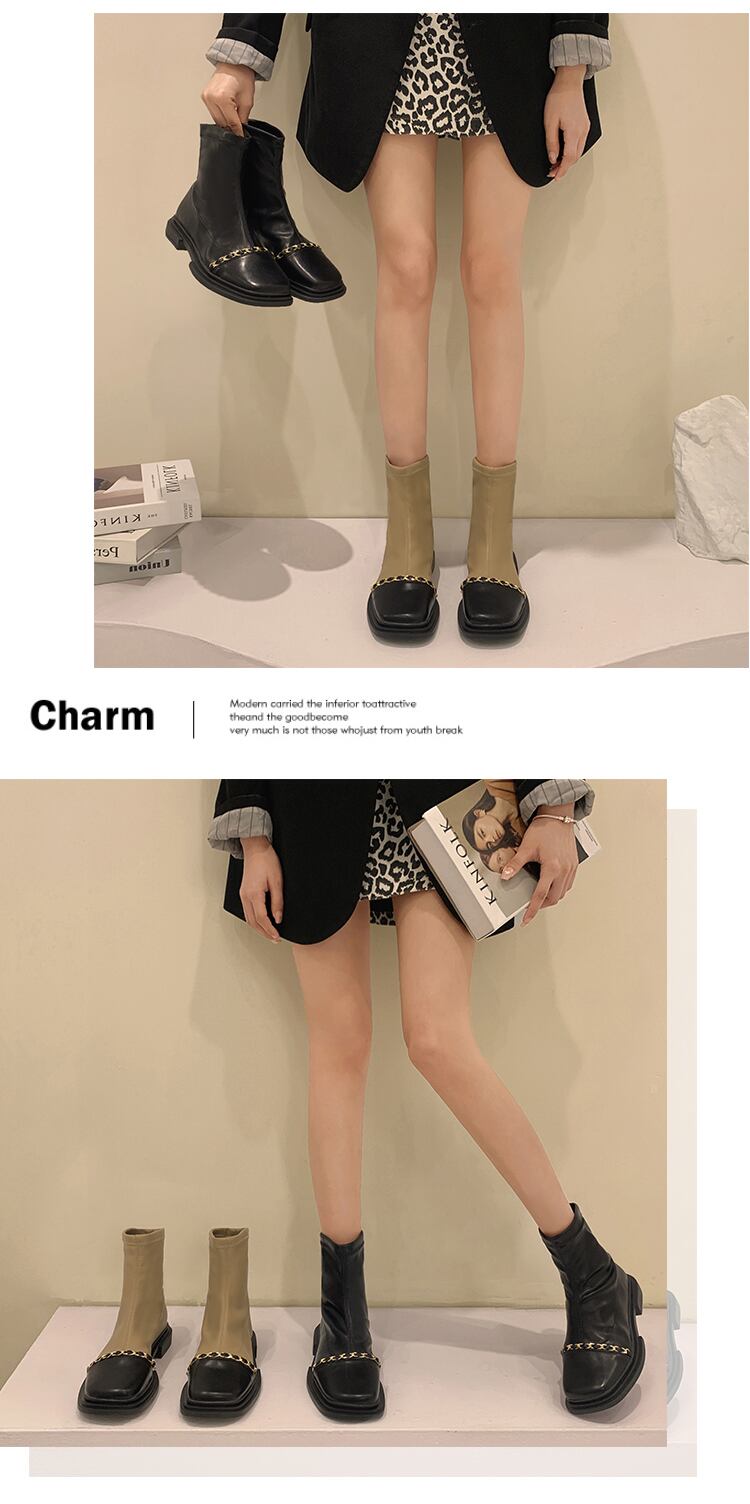 ブーツショートオータム薄手スタンダード レトロ 靴 シューズ 秋物 スクウェア jxjxf16925806093