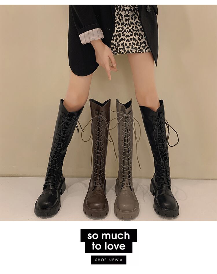 ブーツロングオータムスタンダード レトロ レース 靴 シューズ 秋物 レースアップ jxjxf89971819659