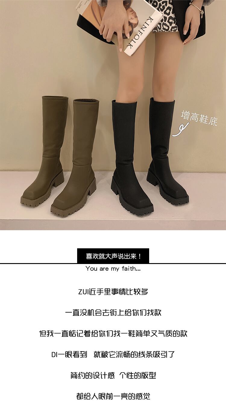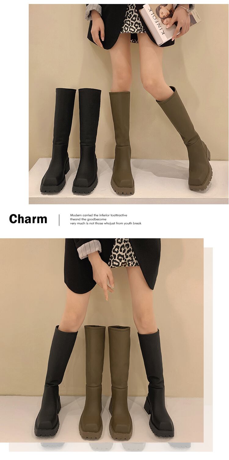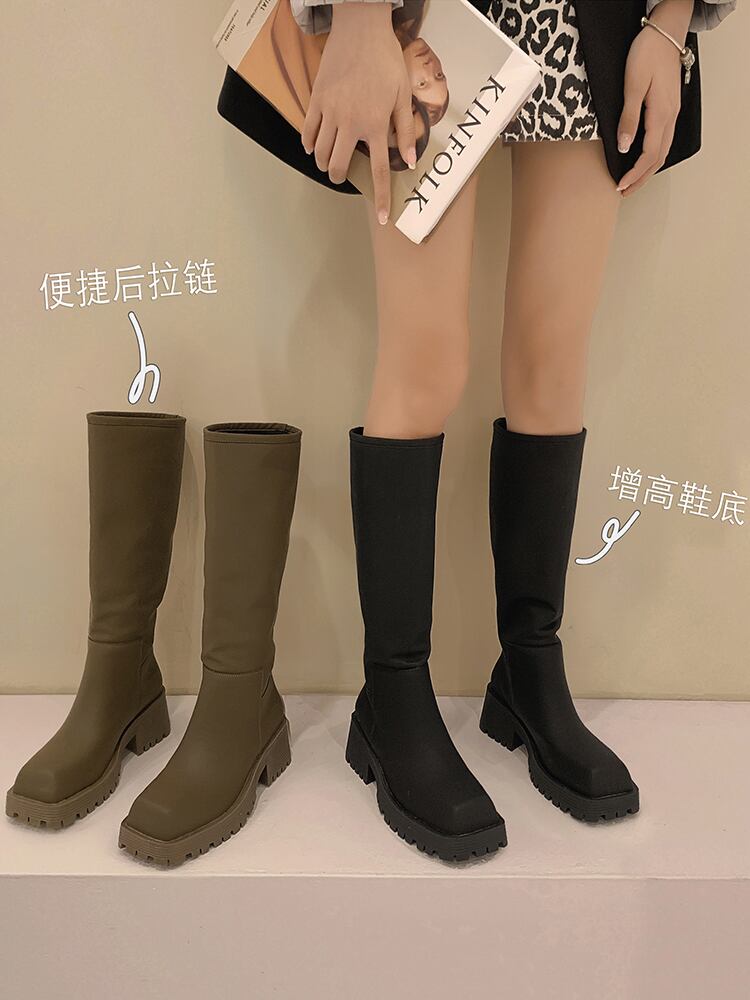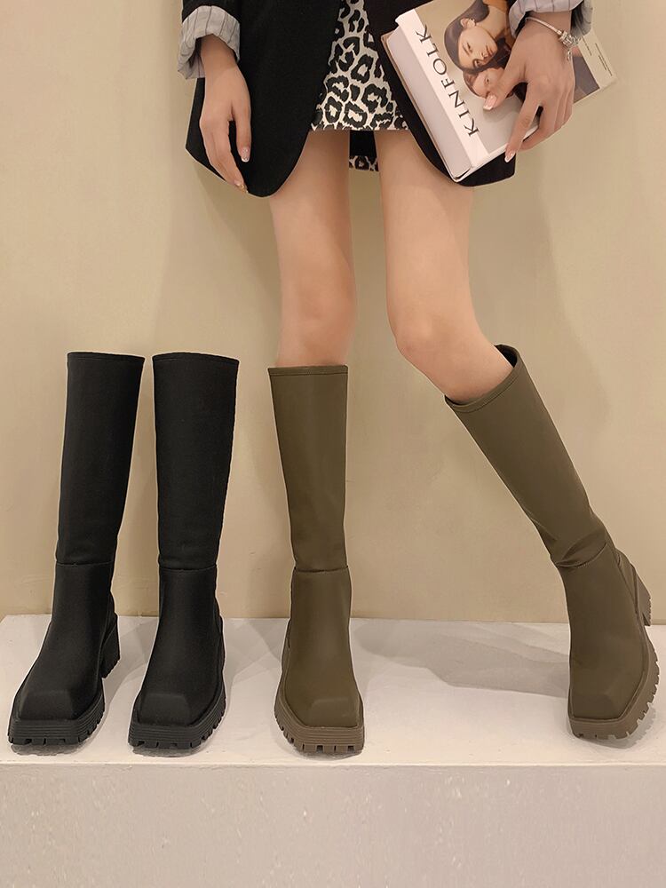 ロングブーツオータムスタンダードヒールスキニー レトロ 靴 シューズ 秋物 スクウェア jxjxf92976520322