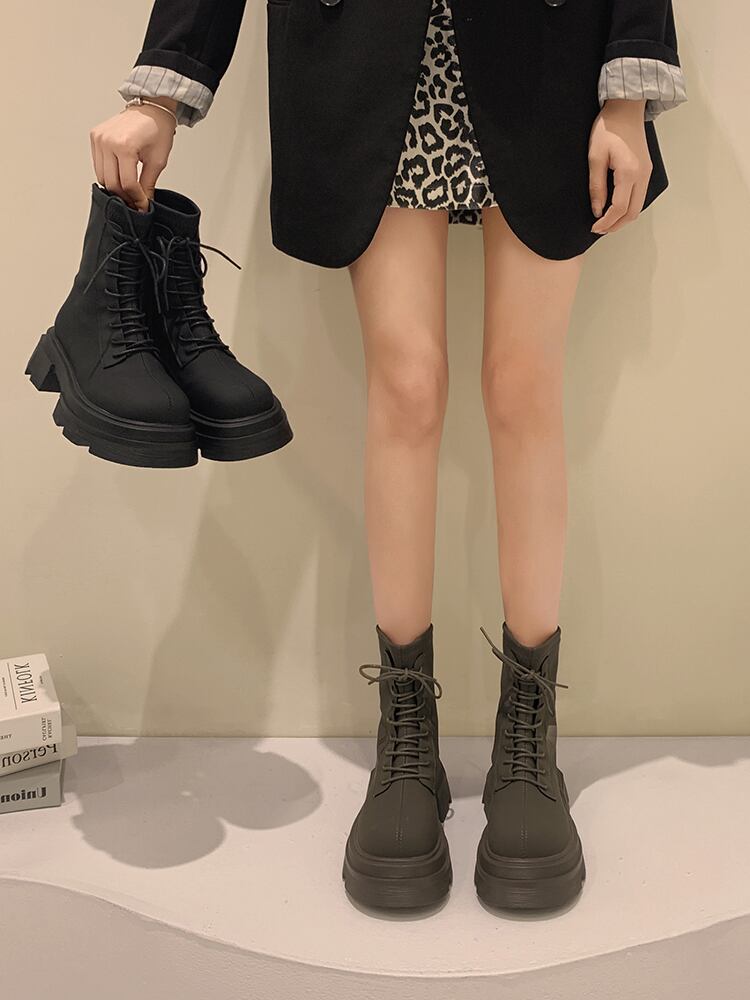 レッドショートブーツオータムスタイルスタンダードヒール レトロ 靴 シューズ 秋物 jxjxf8900420313