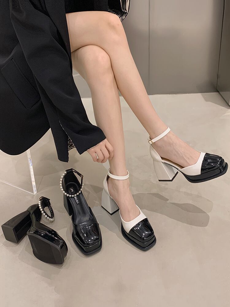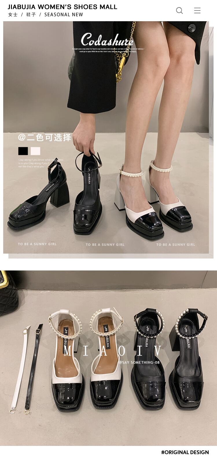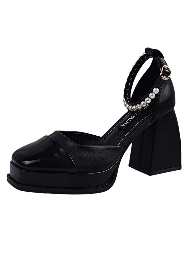 スプリングオータムスタンダードパールハイヒールレザー 靴 シューズ レトロ 春物 秋物 真珠 jxjxf66458267183