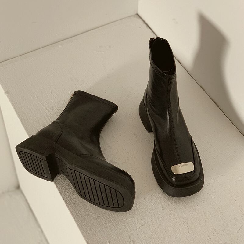 ショートブーツオータムスタンダードメタルストレッチ薄手シングル レトロ 靴 シューズ エラスティック 伸縮 秋物 jxjxf55780568425