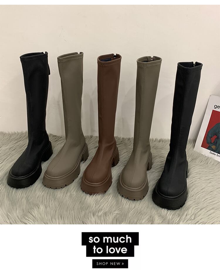 ロングブーツオータムスタンダードストレッチ薄手 レトロ 靴 シューズ エラスティック 伸縮 秋物 jxjxf81597575743