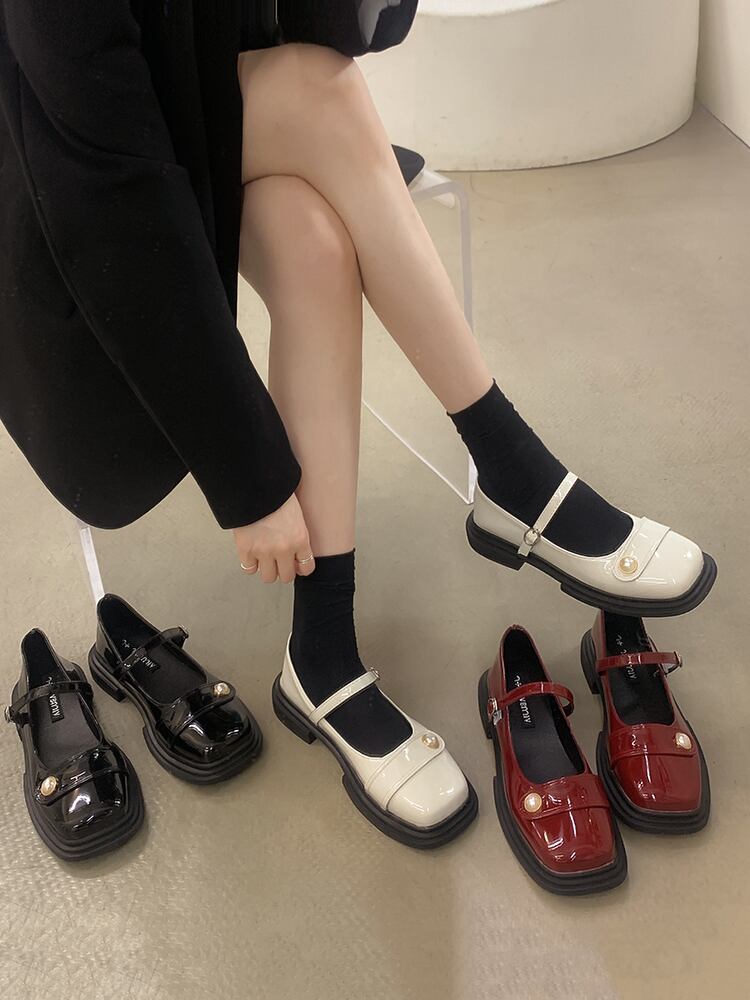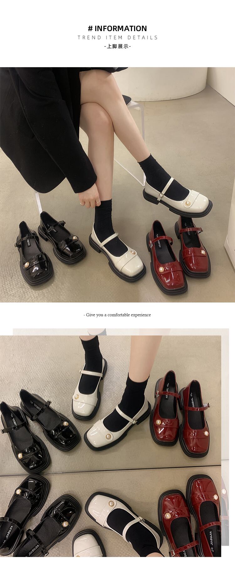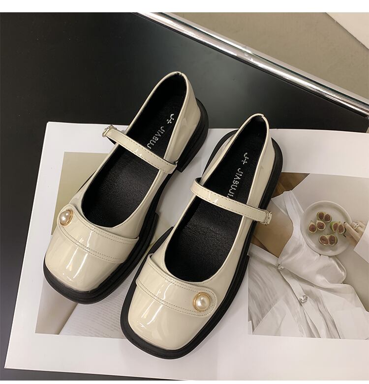 サマースタンダードパールレザー 靴 シューズ レトロ 夏物 真珠 スクウェア jxjxf90718679618