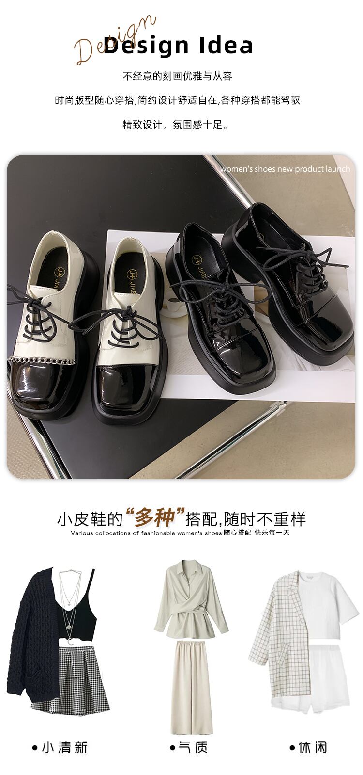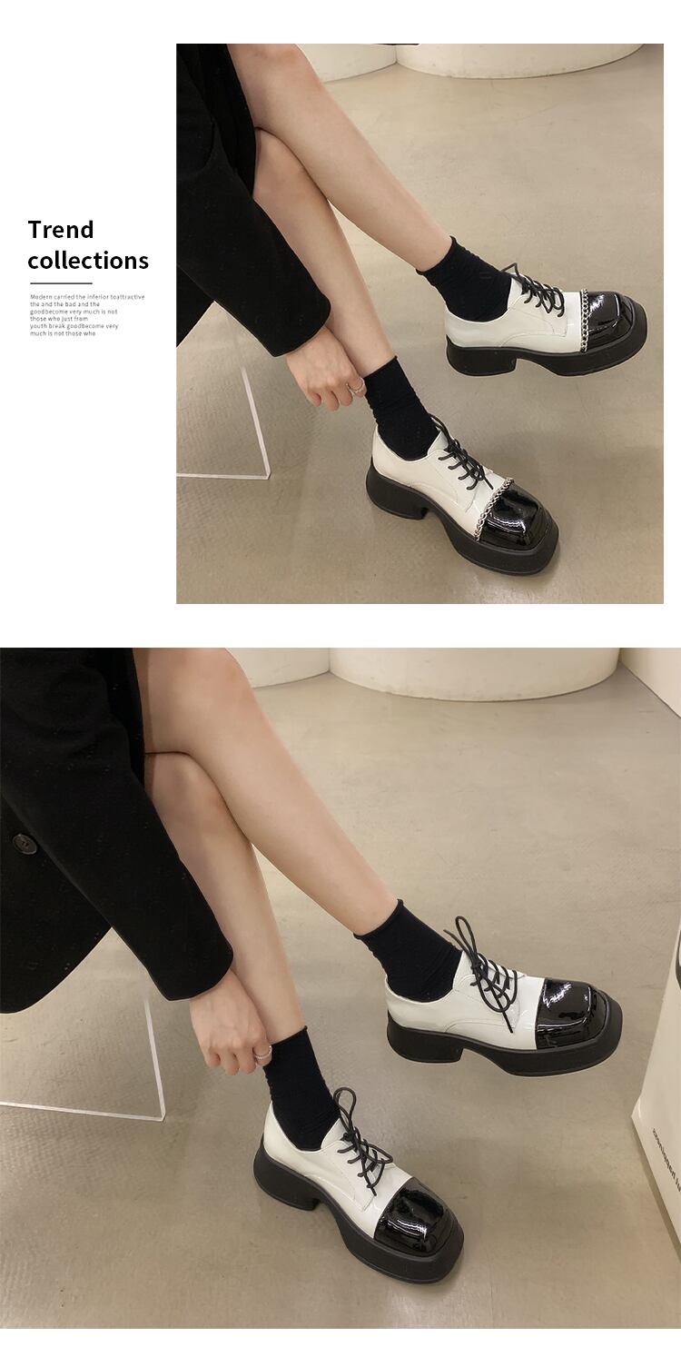 レザーオータムスタンダードチェーン スタイルシングル 靴 シューズ レトロ 秋物 スクウェア jxjxf22660862867