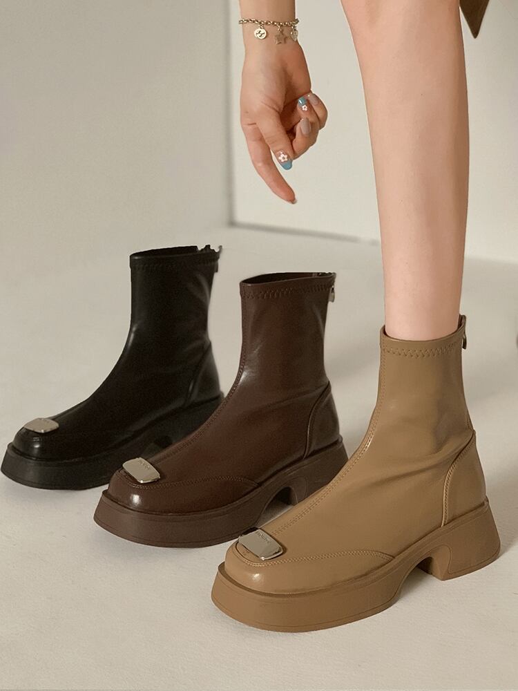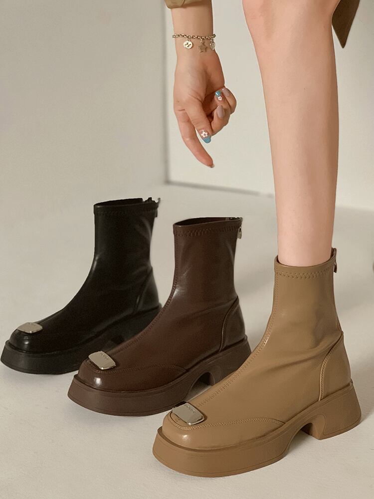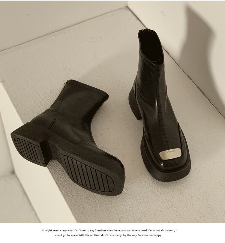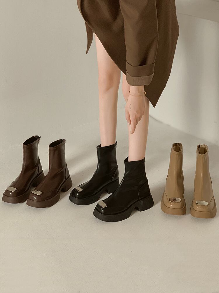 ショートブーツオータムスタンダードメタルストレッチ薄手 レトロ 靴 シューズ エラスティック 伸縮 秋物 jxjxf71074922293