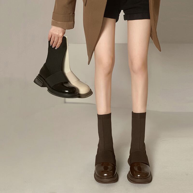 ニットショートブーツオータムスタンダードカジュアルストレッチ薄手 レトロ 靴 シューズ エラスティック 伸縮 秋物 jxjxf70400897187