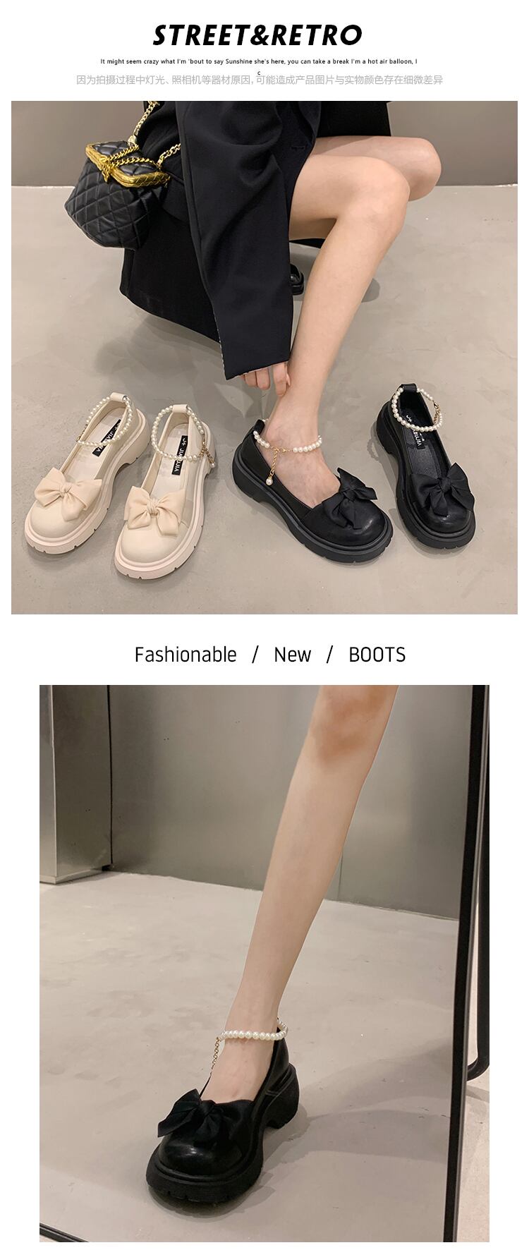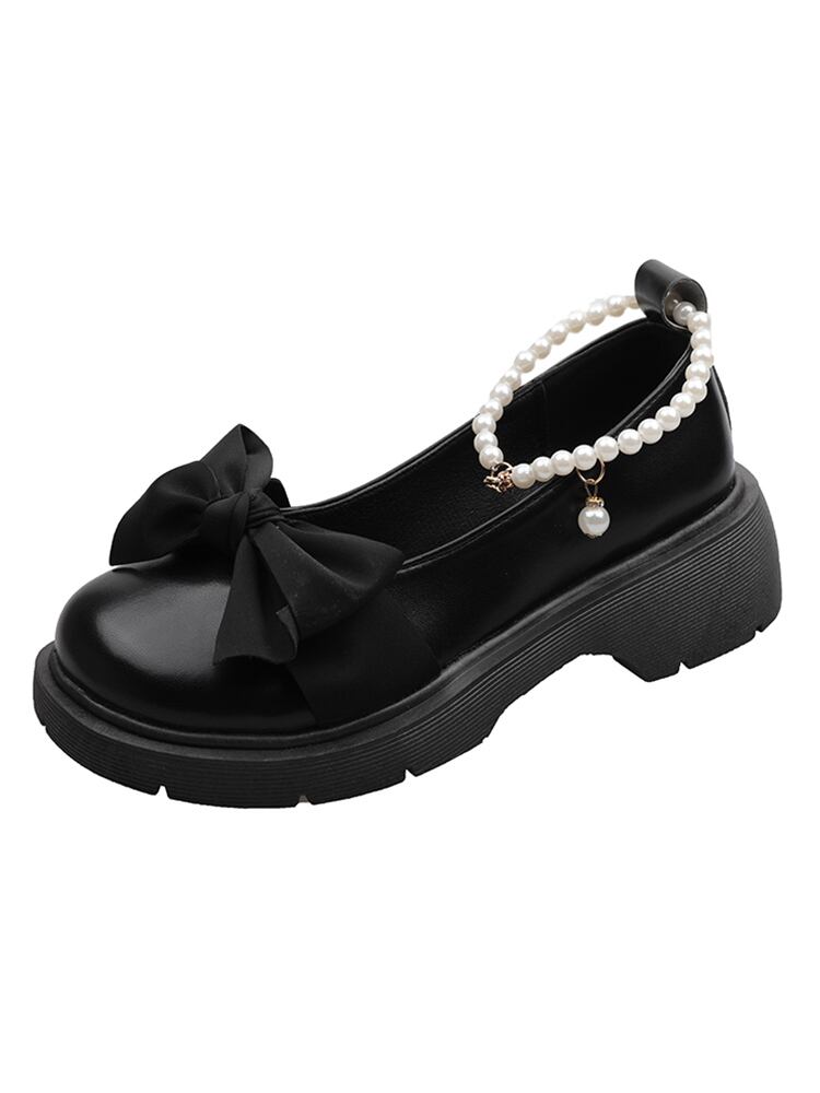 オータムスタンダードパールリボンレザー 靴 シューズ レトロ 秋物 真珠 jxjxf32319351494