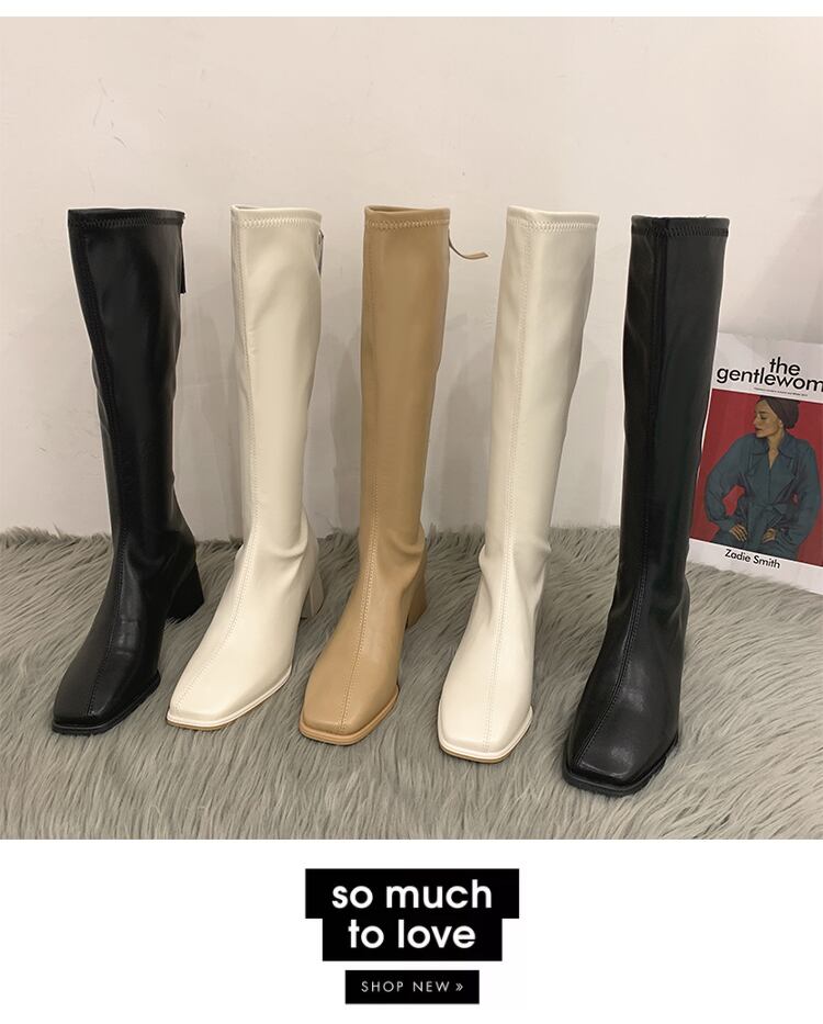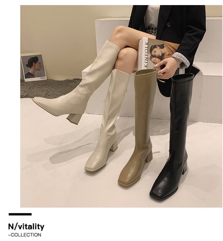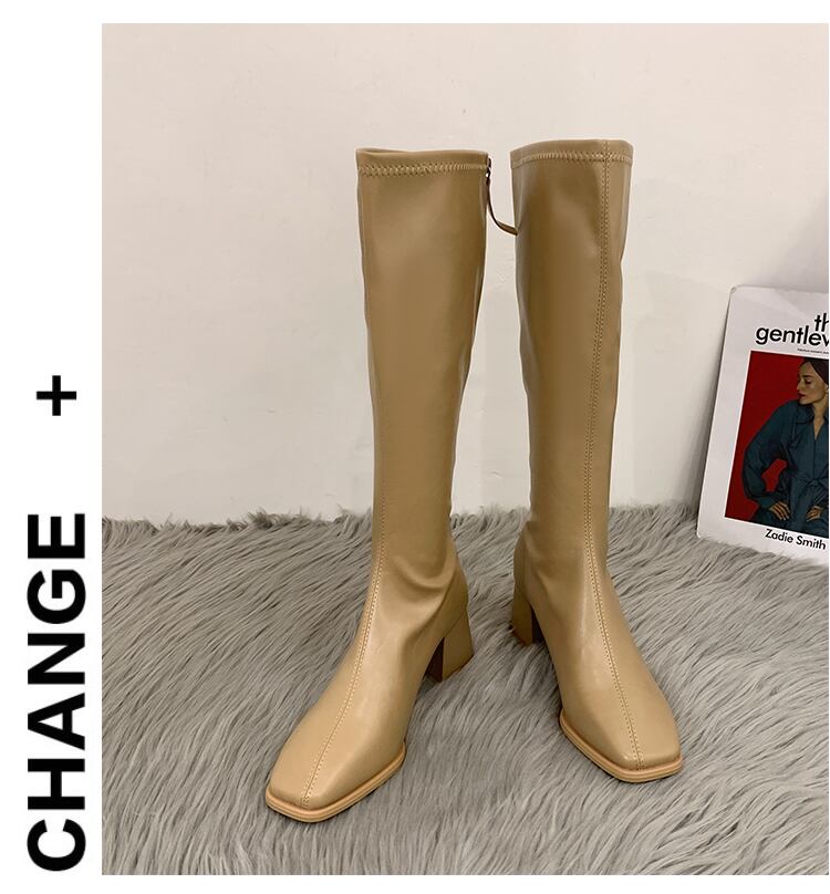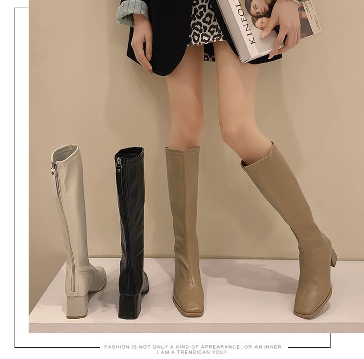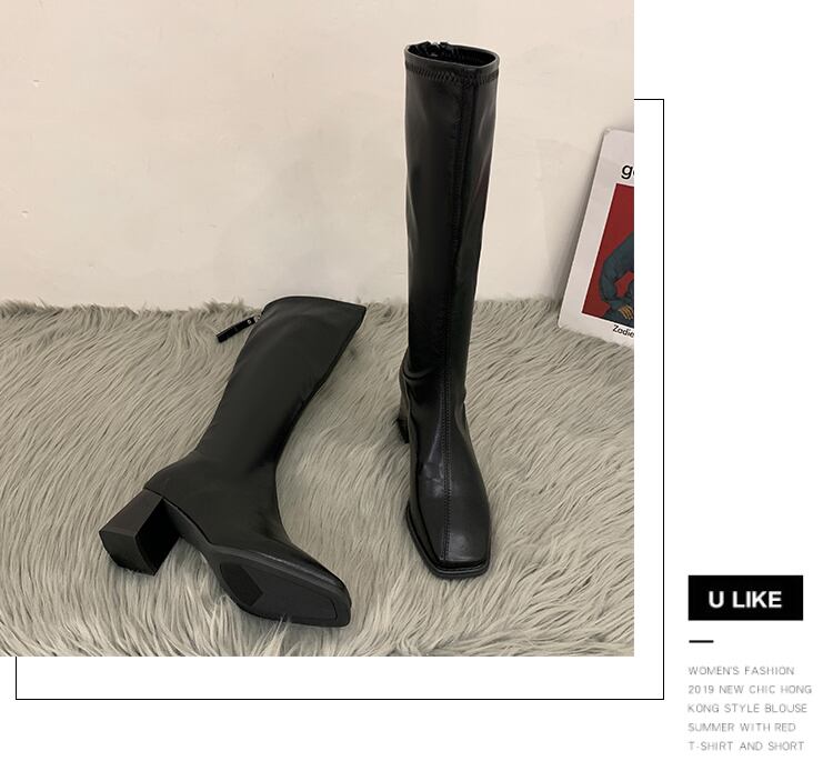 ブーツオータムヒール薄手 ハイヒール 靴 シューズ 秋物 スクウェア jxjxf83621851490