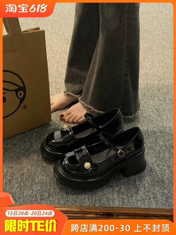 春の女性の靴シングルシューズ 2023 新ファッションレトロオールマッチ小さな厚いヒールノンスリップメリージェーンシューズ スプリング 春物 jxjxf1185661064