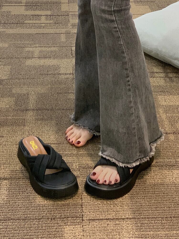 スリッパレディースアウター 2023 春の新ファッションオールマッチ小型快適厚底滑り止めレトロビーチサンダル ミュール 靴 シューズ スプリング 春物 jxjxf8711652853