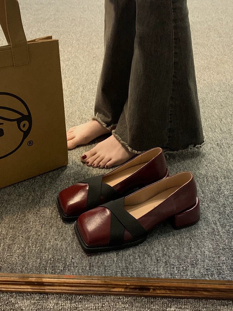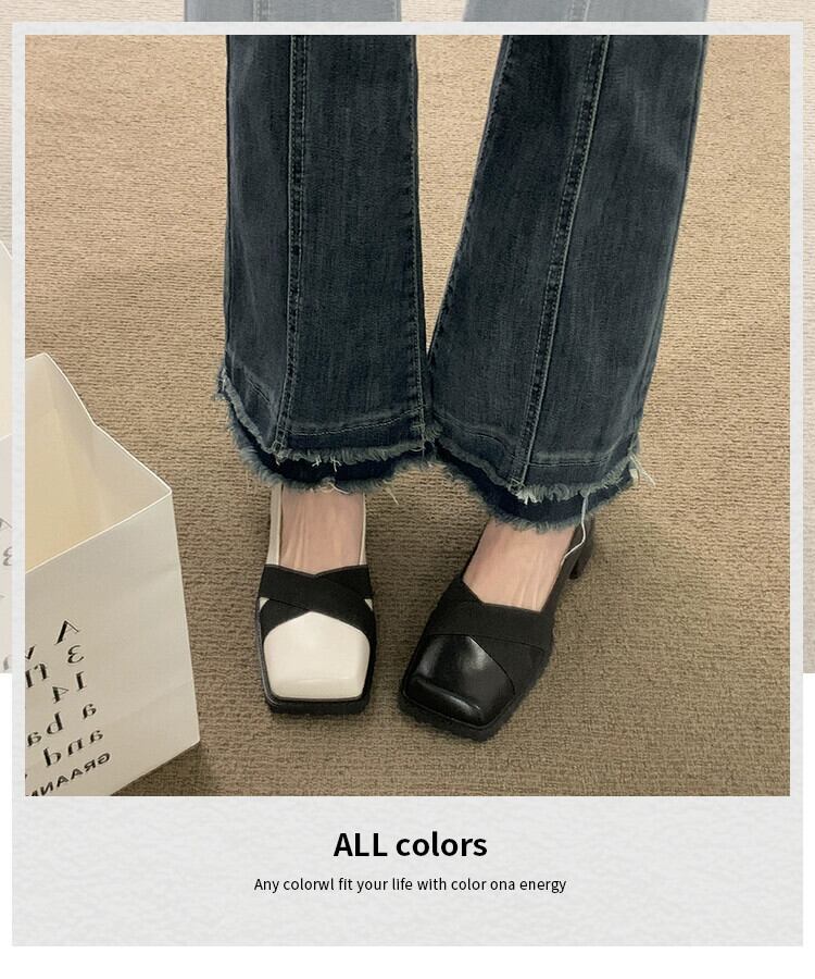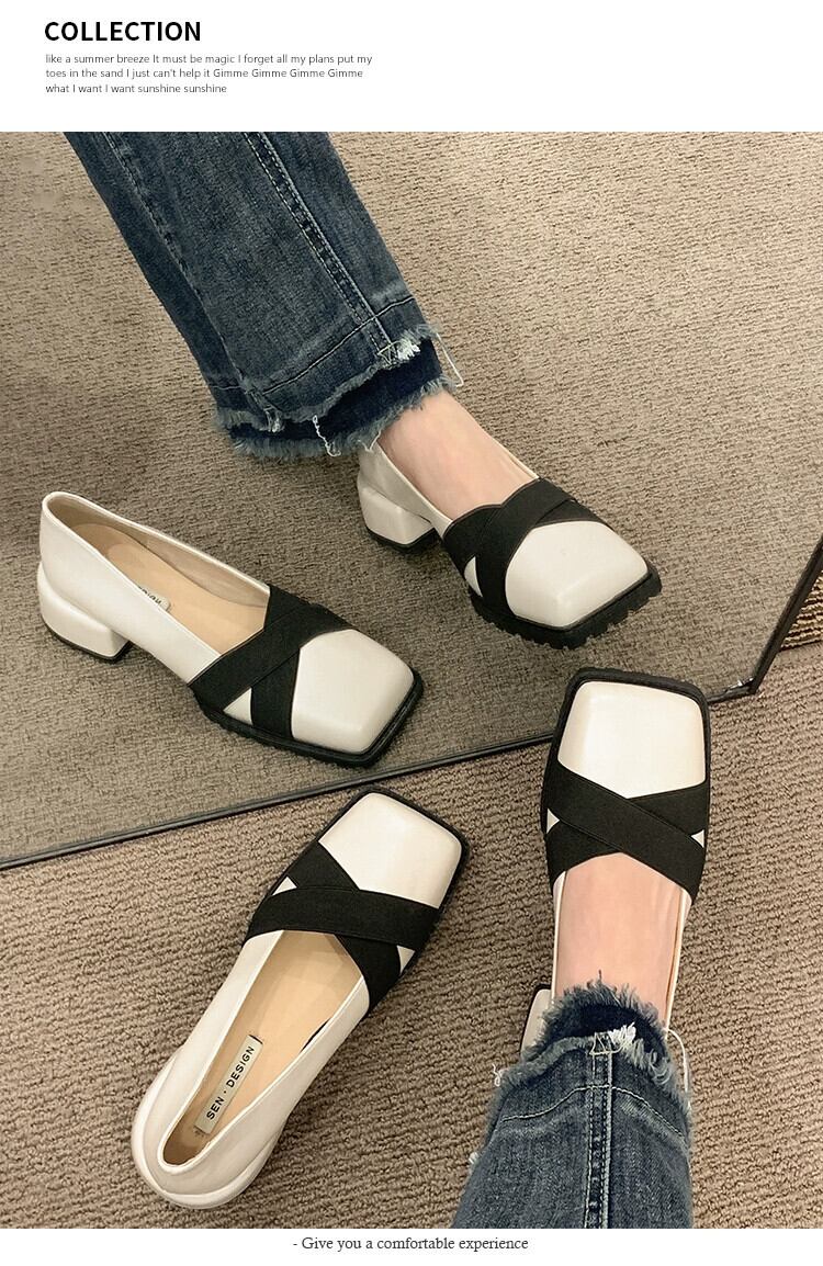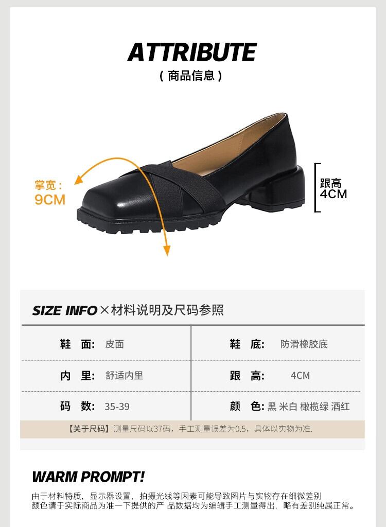 スクエアトゥ小さな革靴の女性の 2023 春の新ファッションレトロオールマッチ浅い口快適なミッドヒールノンスリップフランス靴 シューズ スプリング 春物 レザー スクウェア jxjxf90394342060
