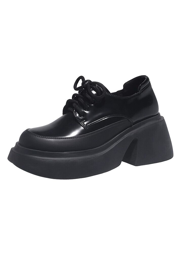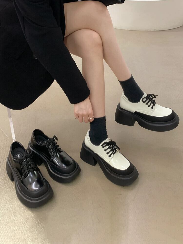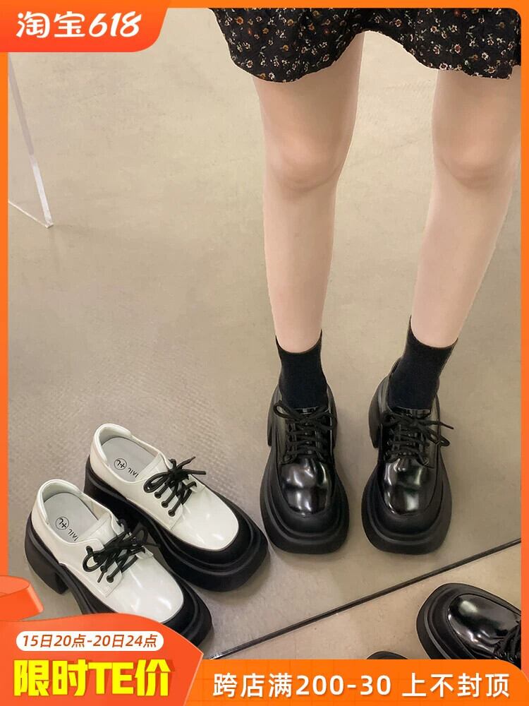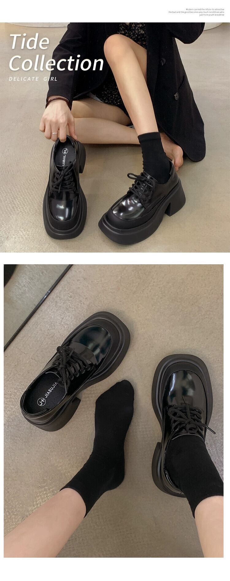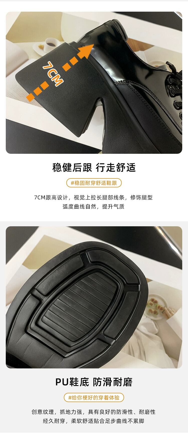 英国スタイルのシングルシューズの女性の 2023 春の新トレンドファッションオールマッチ小さな厚いヒール滑り止めスクエアトゥ小さな革靴 スプリング 春物 レザー スクウェア jxjxf86800258762