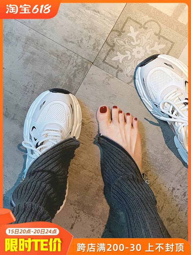Jiabu 偽厚底カジュアルスポーツシューズの女性 2023 夏の新しいスタイルのパパシューズの女性のオールマッチ小さな白い靴トレンド ホワイト サマー 夏物 jxjxf75074474652