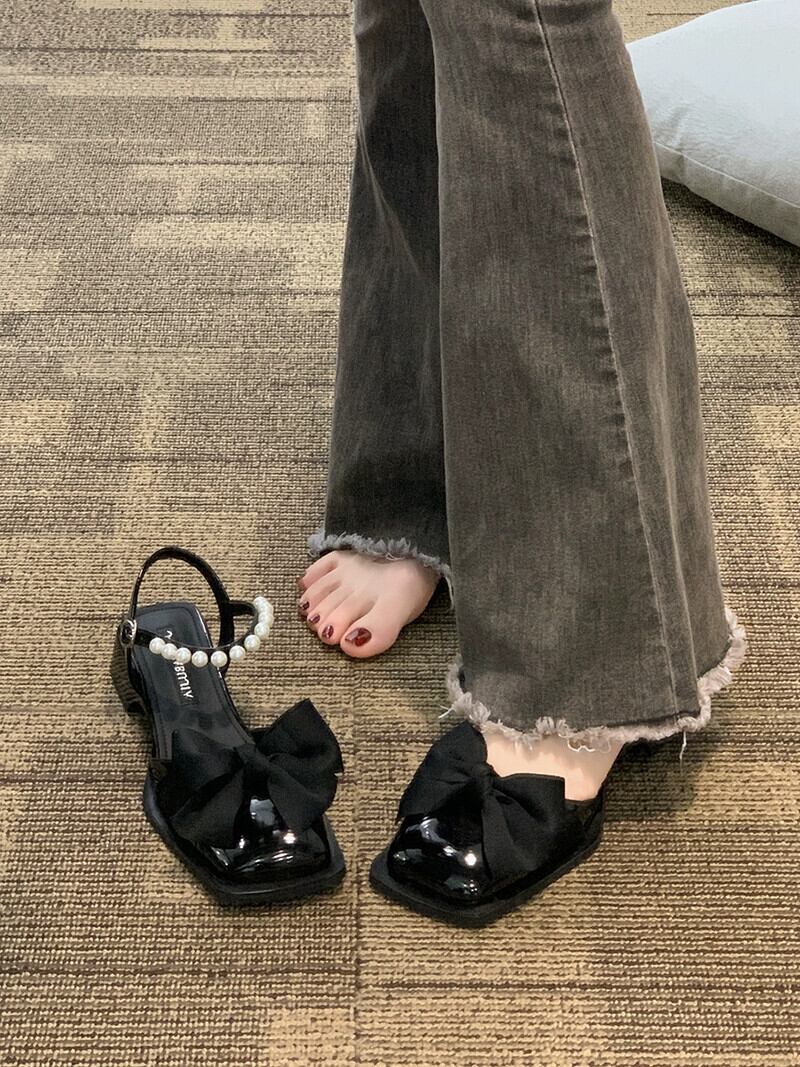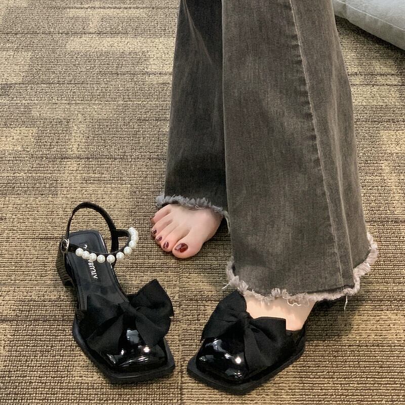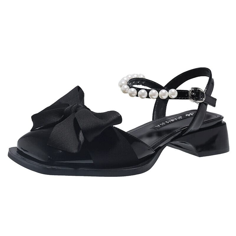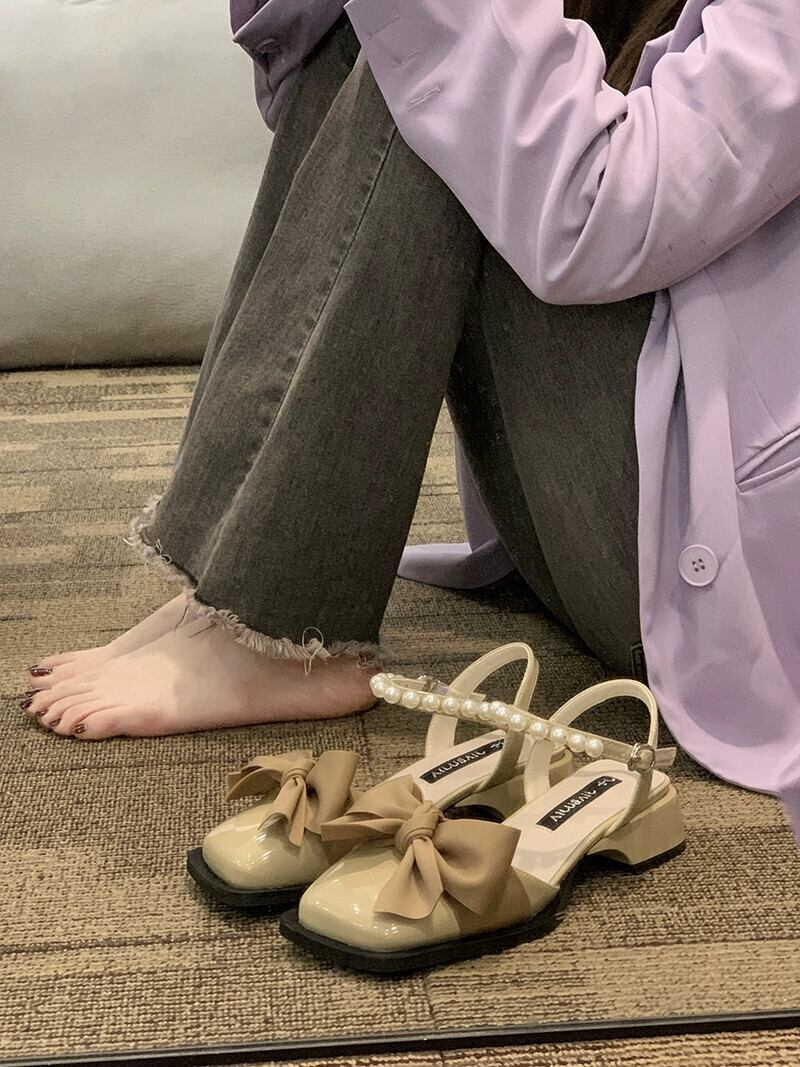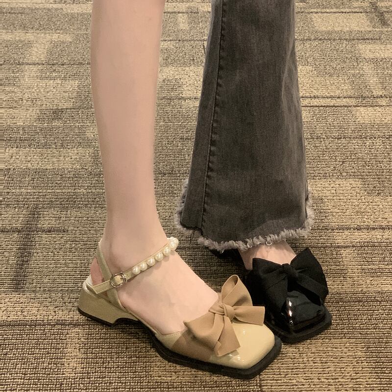 メリージェーン サンダル レディース 2023 春 多用途 レトロ ボウ 太いヒール 滑り止め 西洋スタイル 小さな革靴 シューズ リボン スプリング 春物 レザー jxjxf64735208458
