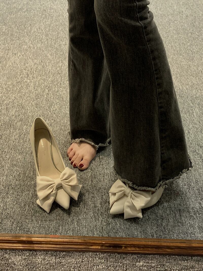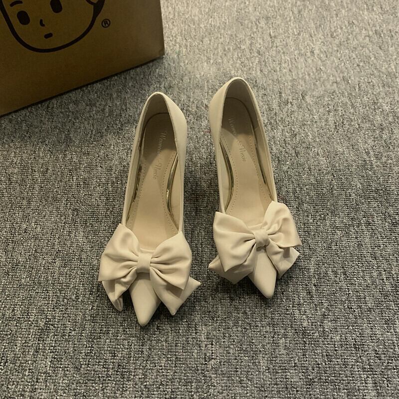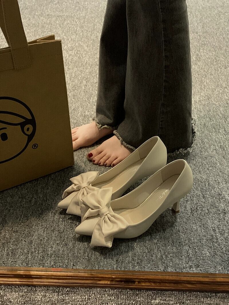 ポインテッドトゥシングルシューズレディース 2023 春の新ファッションオールマッチアインスタイルちょう結び小剣フェアリースタイルハイヒールトレンド 靴 リボン スプリング 春物 jxjxf93633992487
