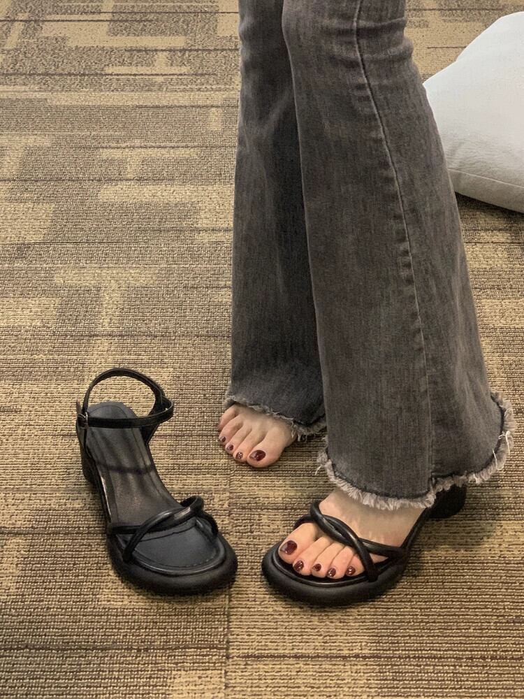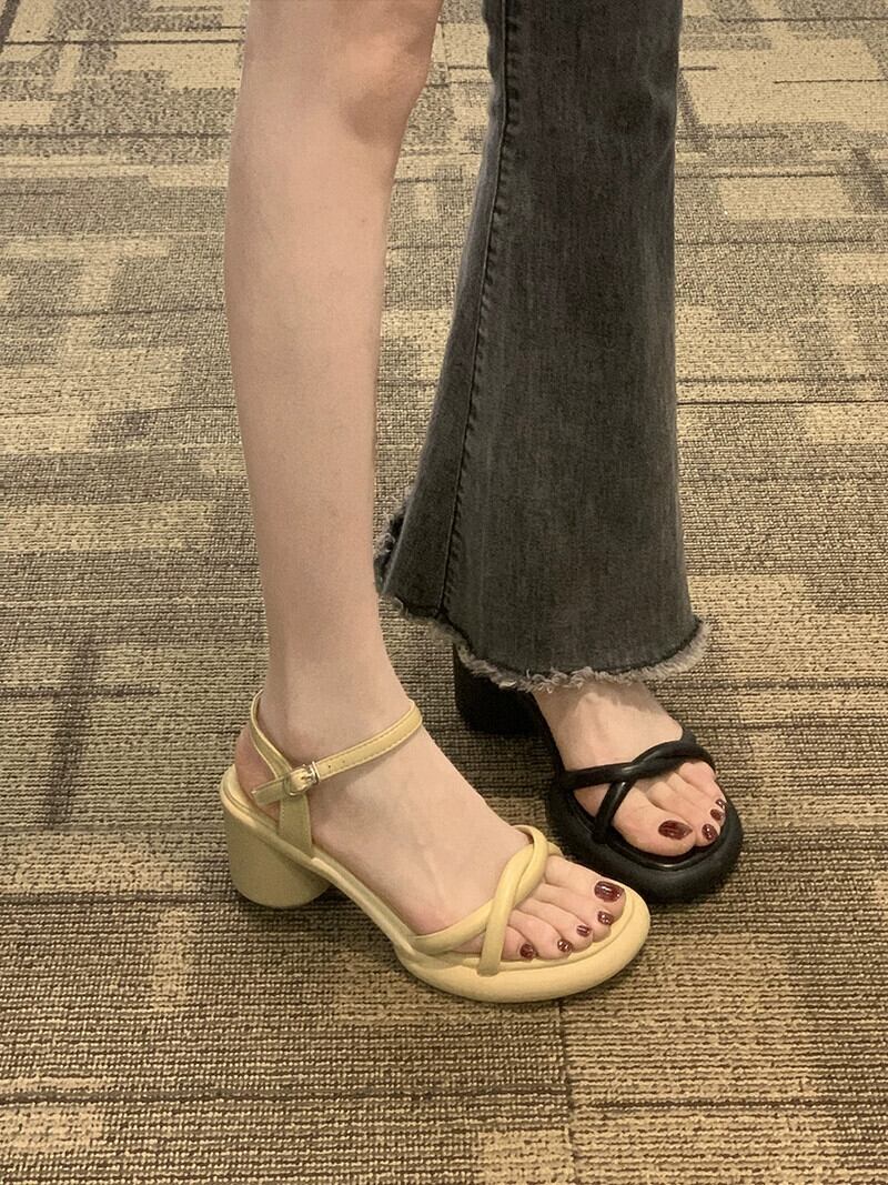 Jiabu フェイクサンダル女性の 2023 春の新ファッション優しい小さな太いヒール滑り止め一言ベルトハイヒール 靴 シューズ スプリング 春物 ハーネス スリッポン jxjxf33625327720