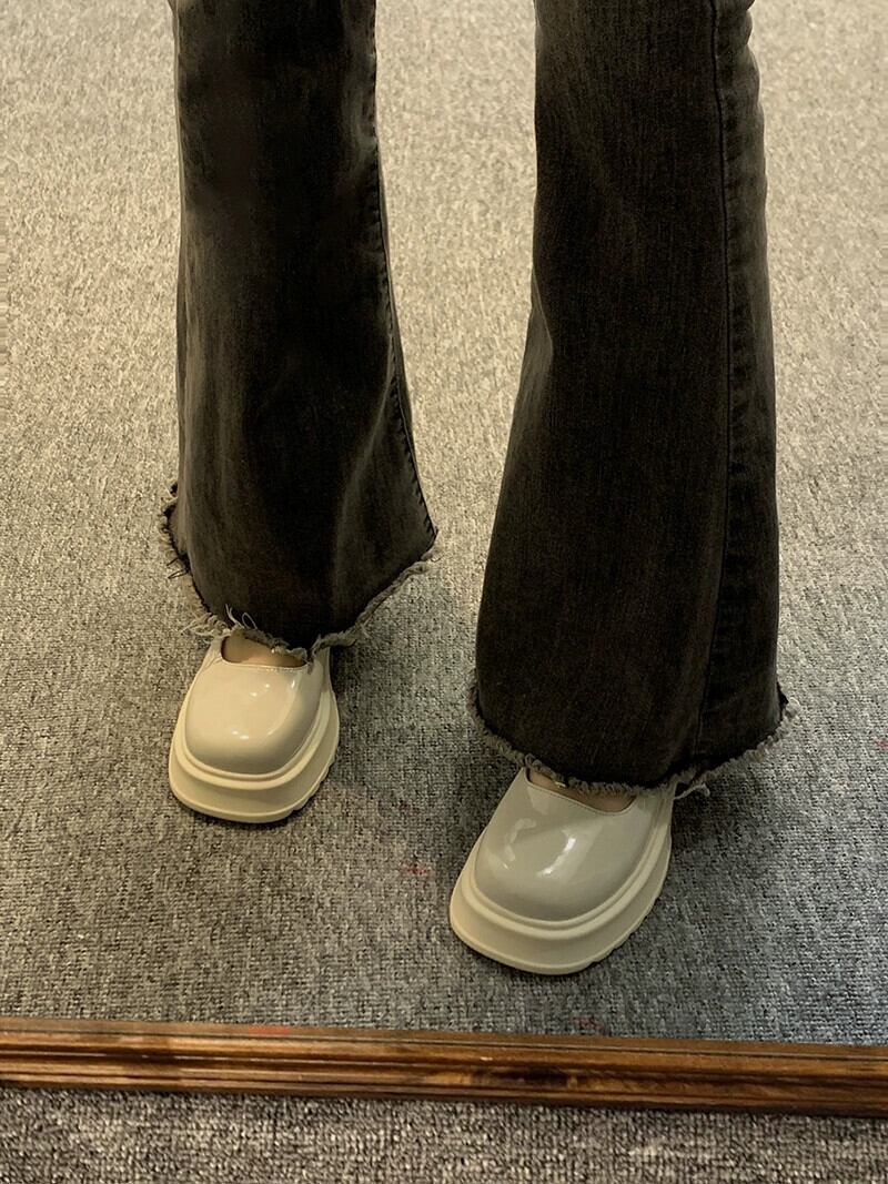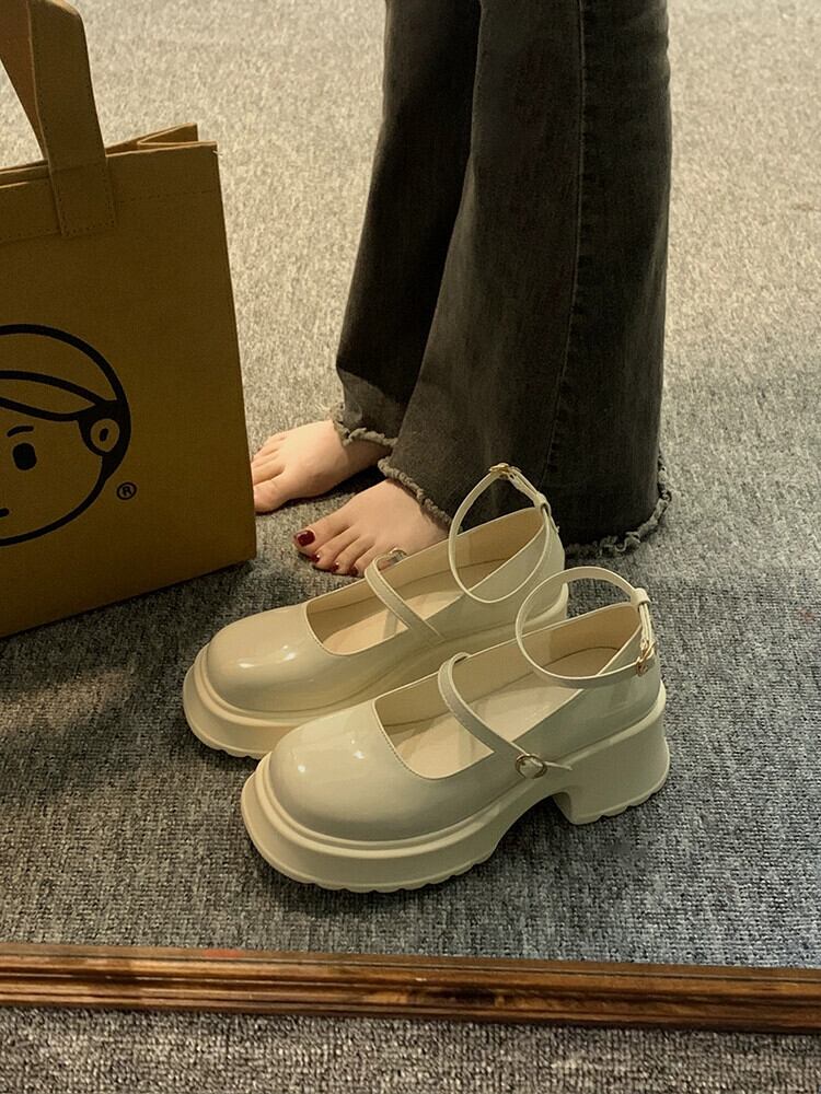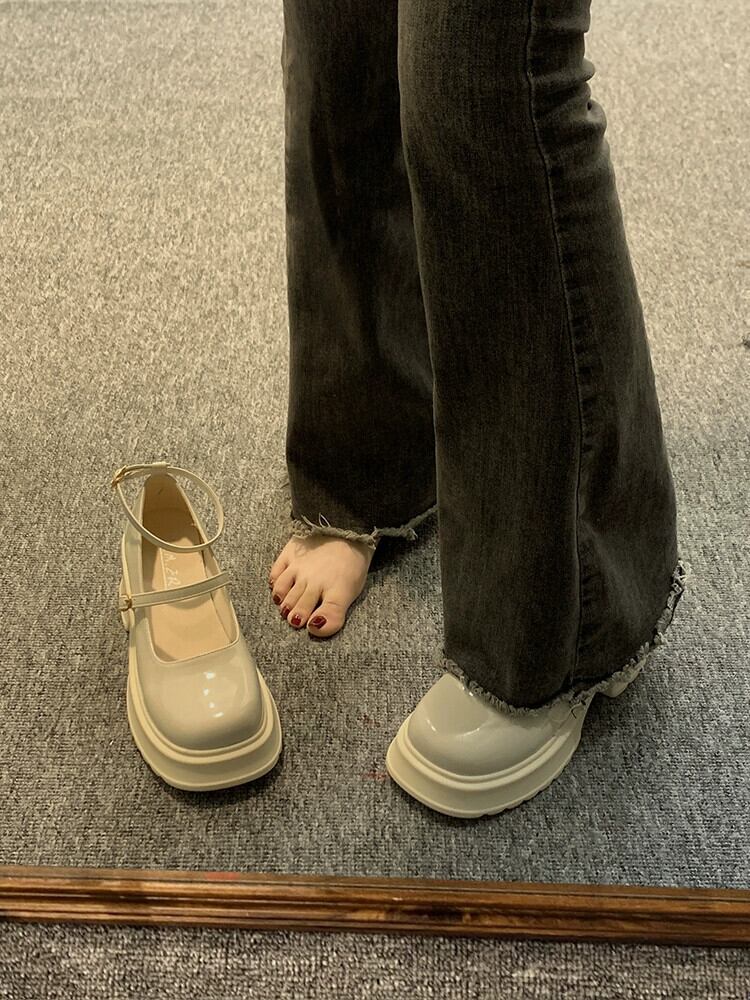 スクエアトゥ メリージェーンシューズ レディース 2023 春新作 浅い口 レトロ ファッション オールマッチ 厚底 優しい革靴 トレンド スプリング 春物 レザー スクウェア jxjxf11706922748