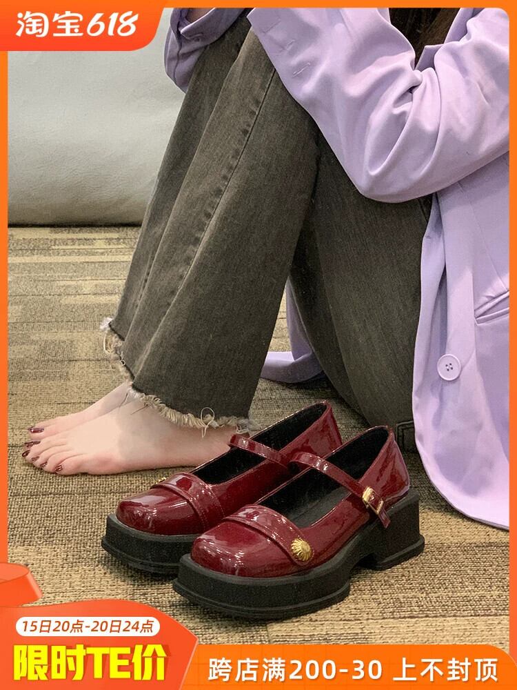 スクエアトゥメリージェーンシューズ女性の 2023 年春の新ファッションオールマッチ小さな厚底滑り止めレトロ小さな革靴 スプリング 春物 レザー スクウェア jxjxf66344041499