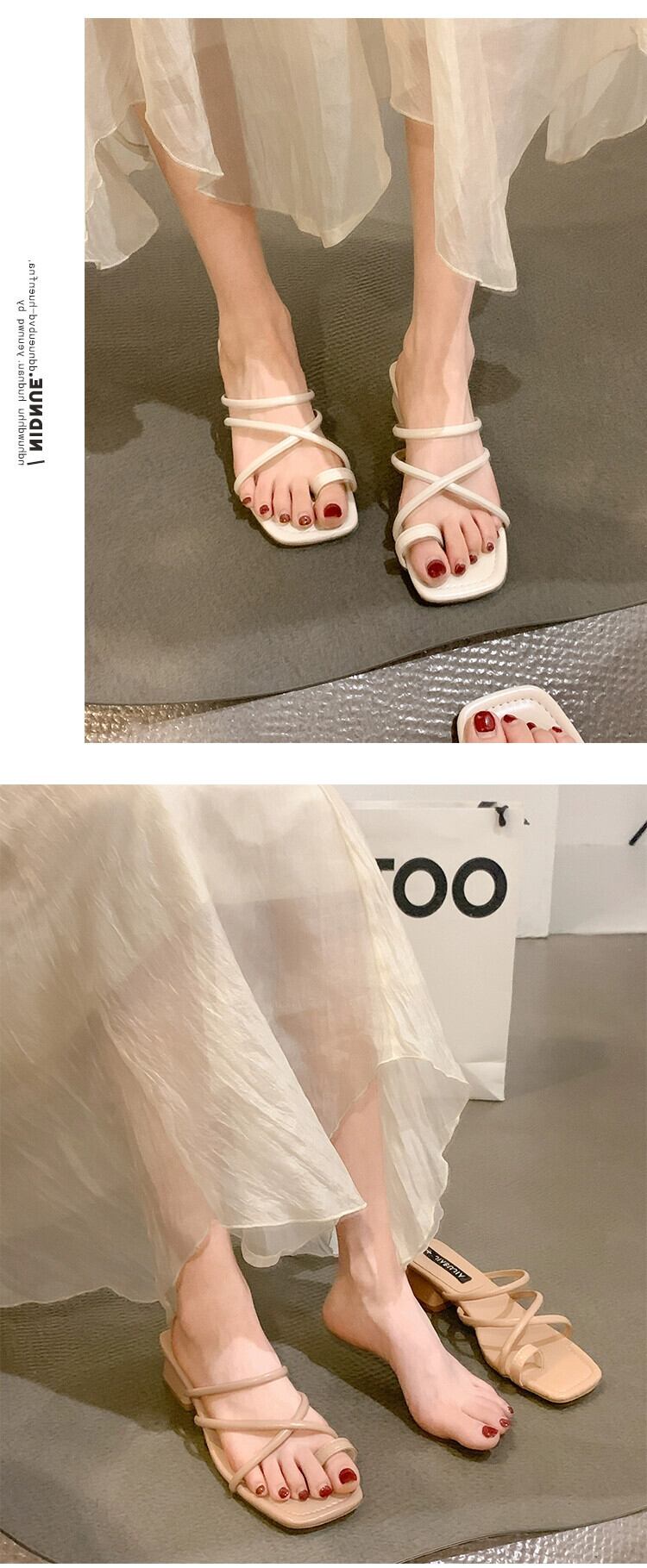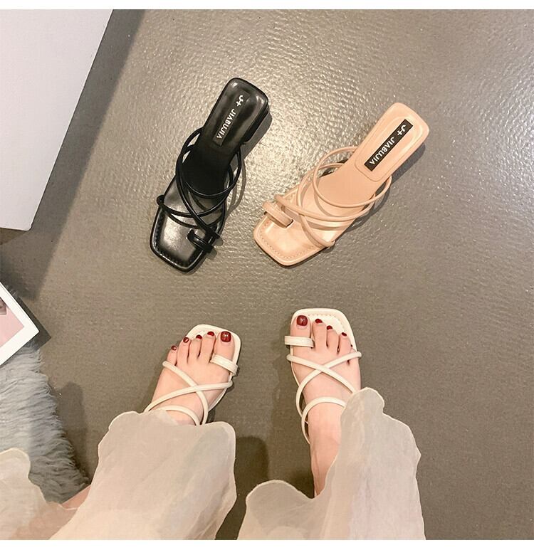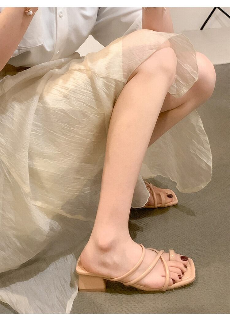 スリッパ レディース 2023 春の新作スーパーオールマッチ優しいレトロ太いヒール滑り止めアウターウェアセットトゥサンダルとスリッパトレンディ ミュール 靴 シューズ スプリング 春物 jxjxf52163147752