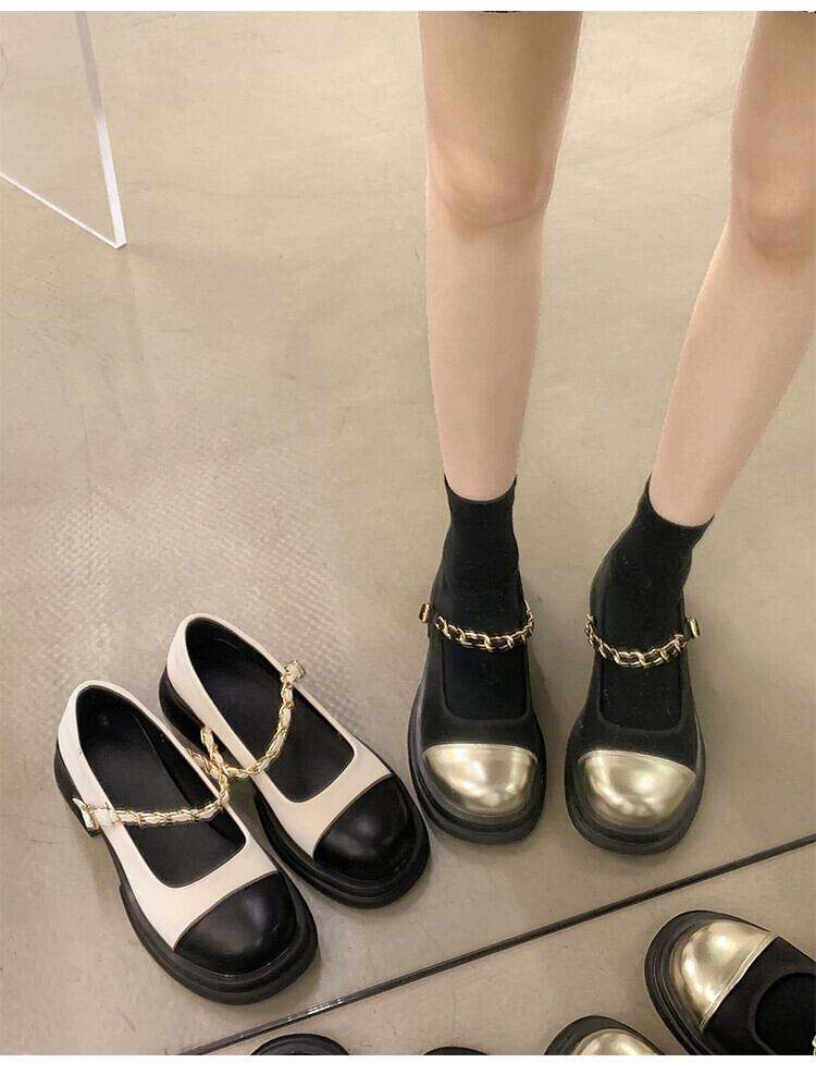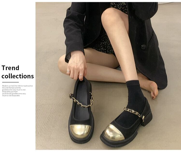 シングルシューズ女性の 2023 春の新スーパーオールマッチレトロ厚いヒールノンスリップ浅い口ラウンドトゥメリージェーンシューズ 靴 スプリング 春物 ラウンドトー jxjxf20429211295