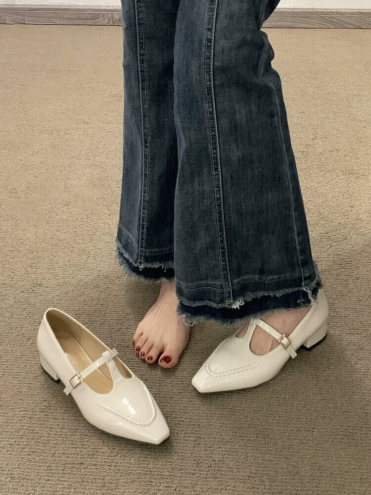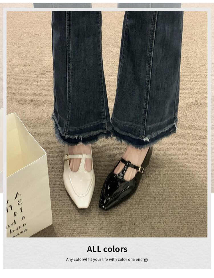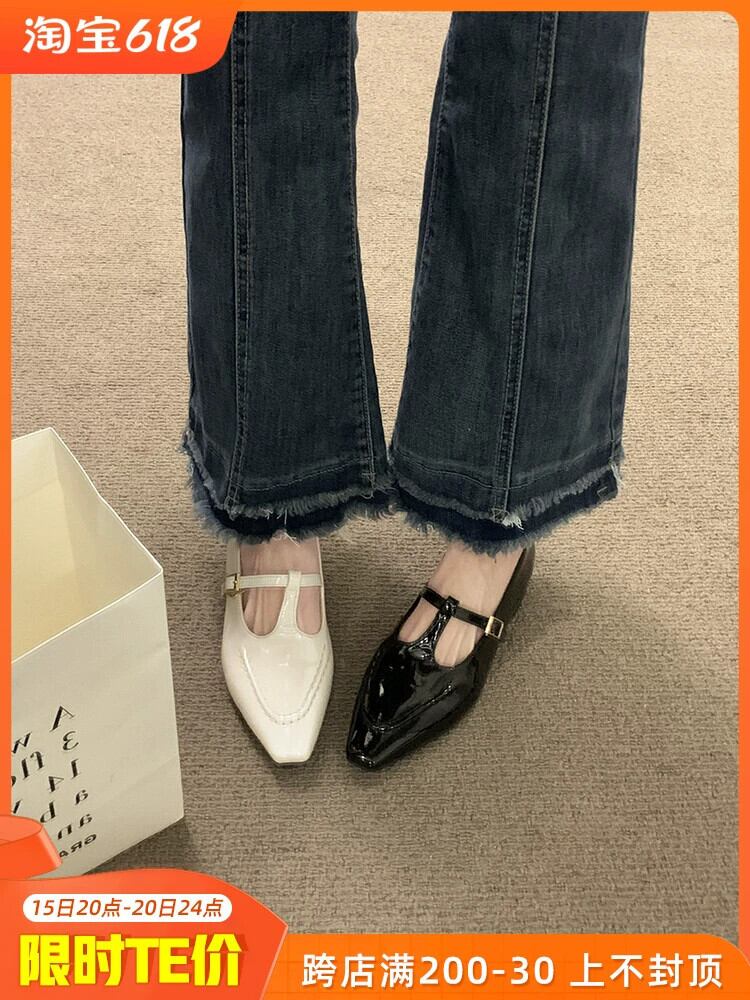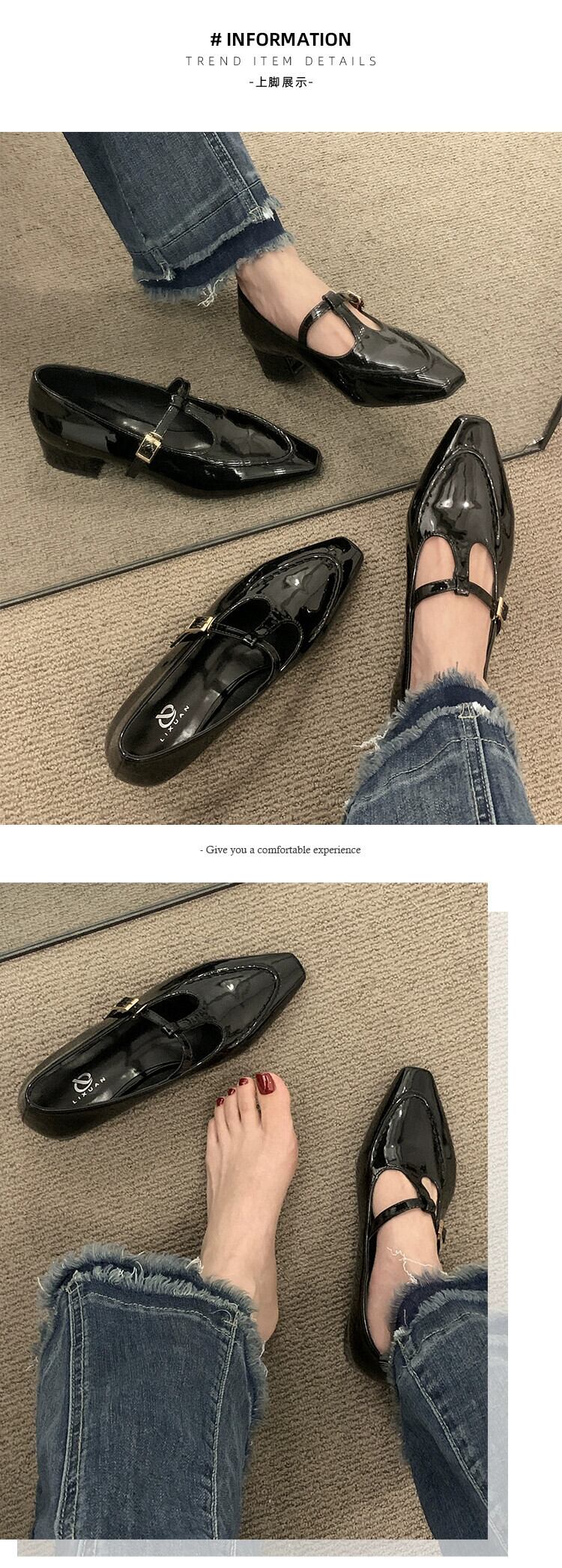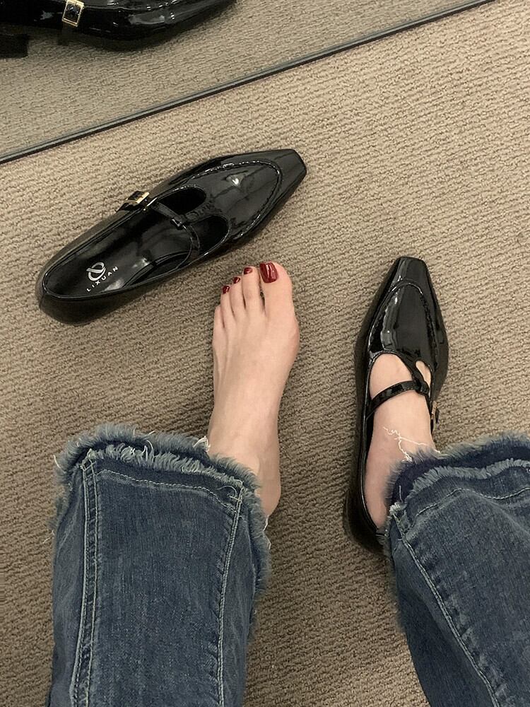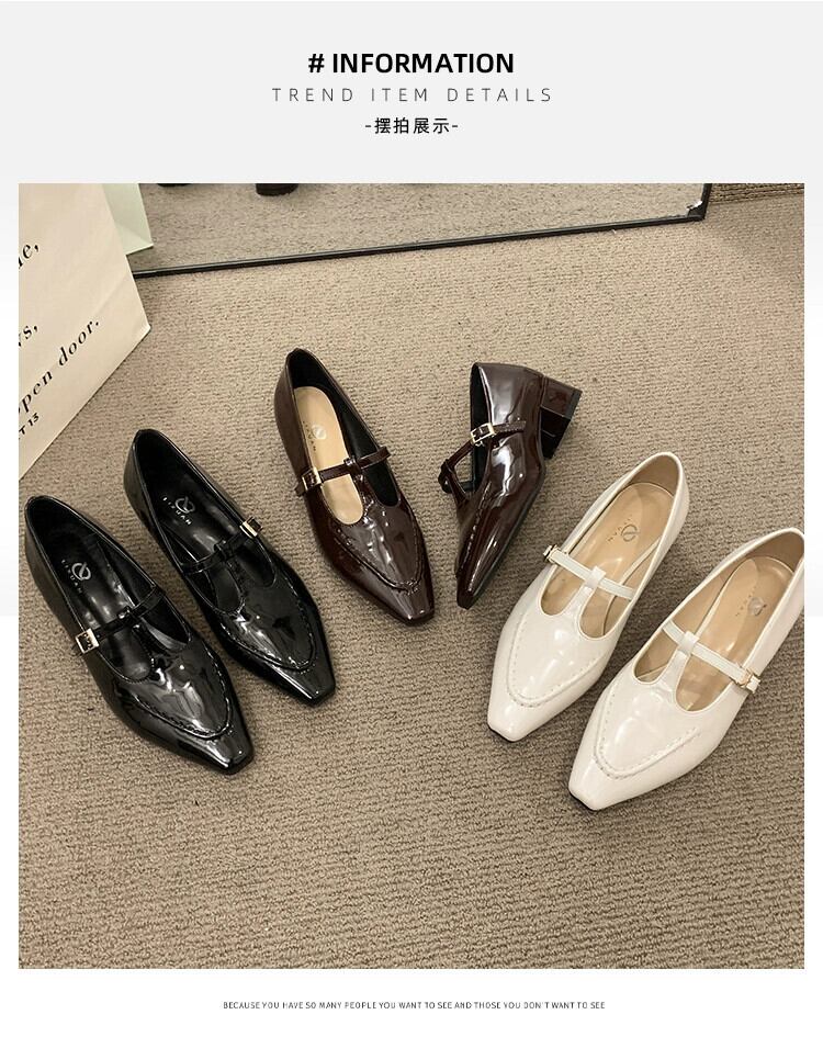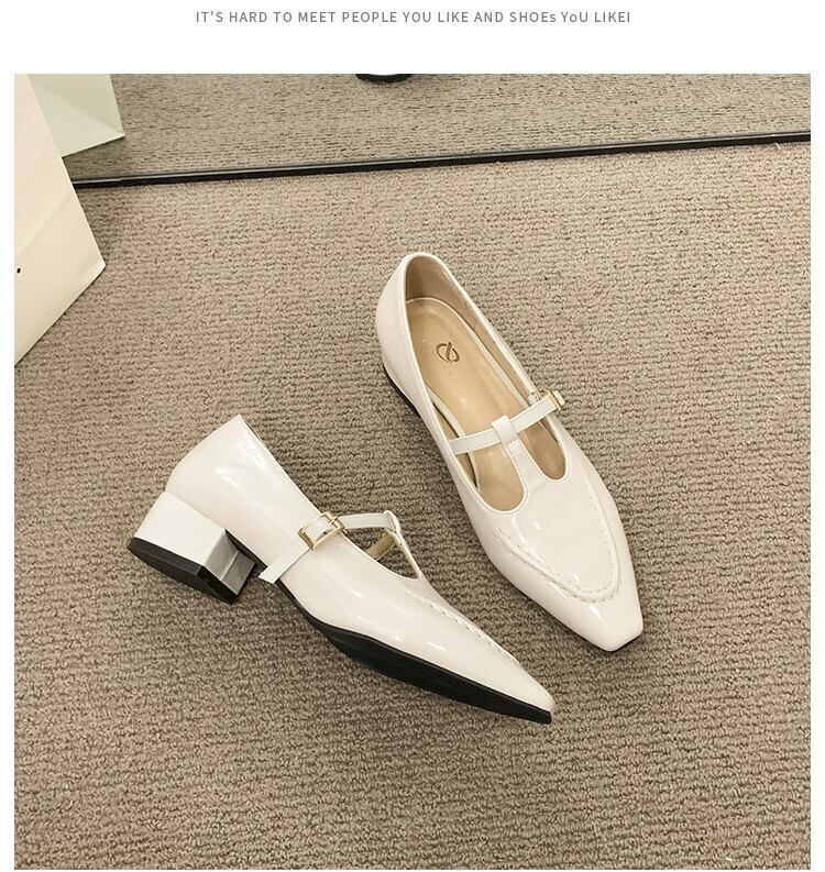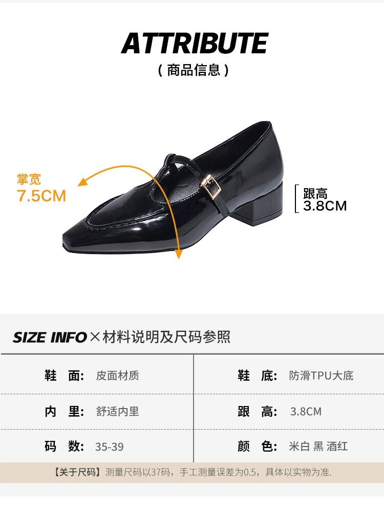 メリージェーンシューズレディース 2023 春ファッションレトロトレンドオールマッチ小さな厚いヒール滑り止めスクエアトゥ小さな革靴 スプリング 春物 レザー スクウェア jxjxf26755887682