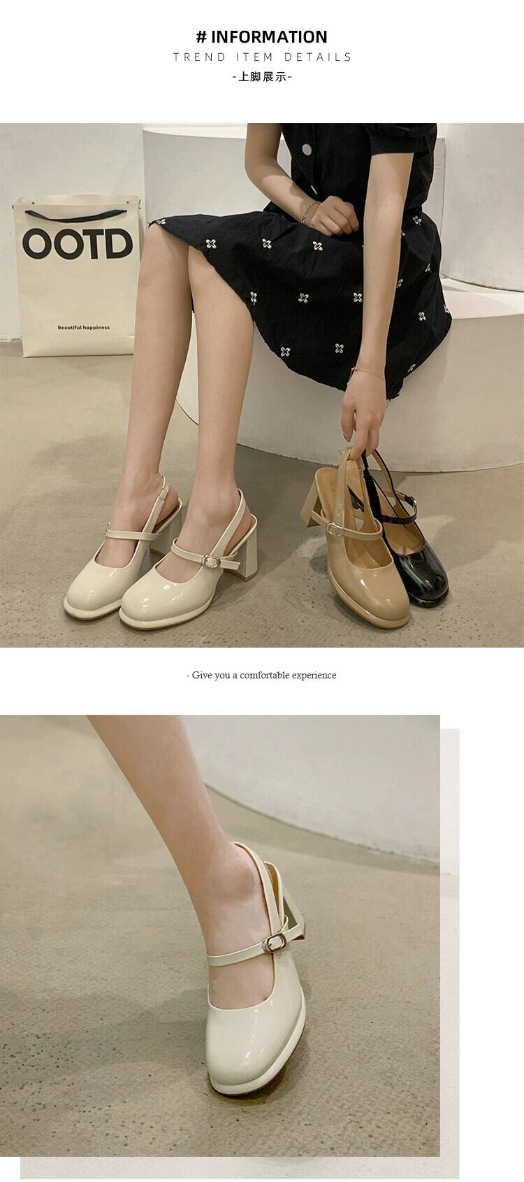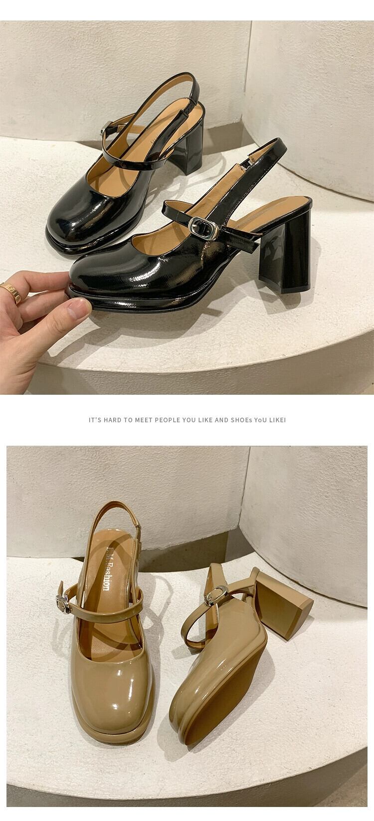 ネット有名人包頭サンダルの女性の 2023 春の新作ファッションオールマッチ優しいレトロなハイヒールのスカートの革靴 シューズ スプリング 春物 レザー jxjxf20474483894