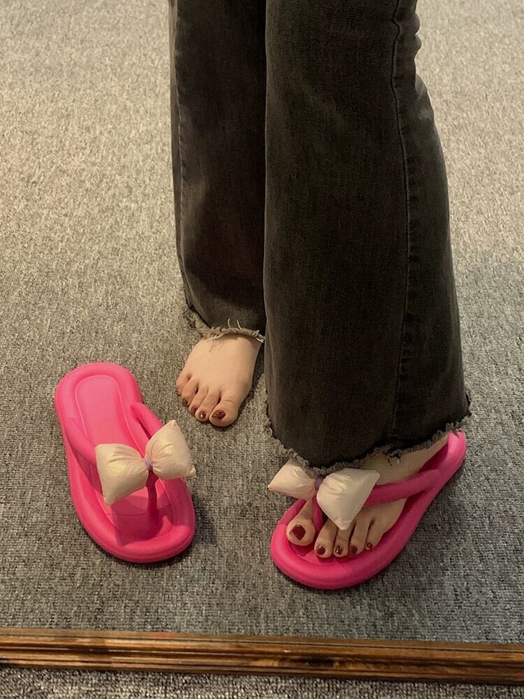 Jiabu フェイクサンダルとスリッパレディース 2023 春の新しいフラット滑り止めオールマッチちょう結びビーチカジュアルビーチサンダル リボン ミュール 靴 シューズ スプリング 春物 jxjxf80723176852