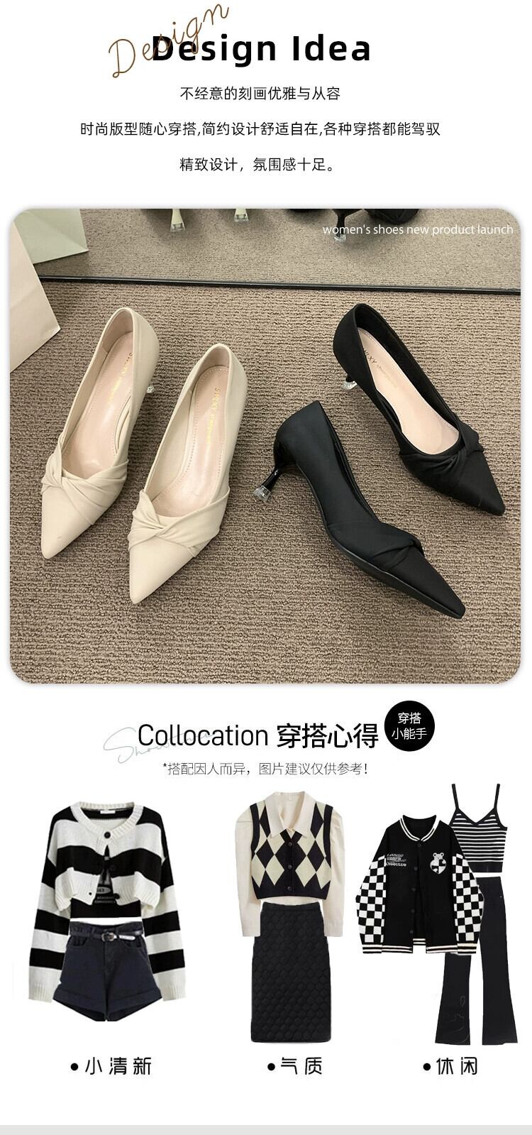 インターネットセレブのポインテッドトゥシングルシューズレディース 2023 春の新ファッションオールマッチ小さな優しいスティレットスタイルのハイヒール 靴 スプリング 春物 jxjxf92826286251