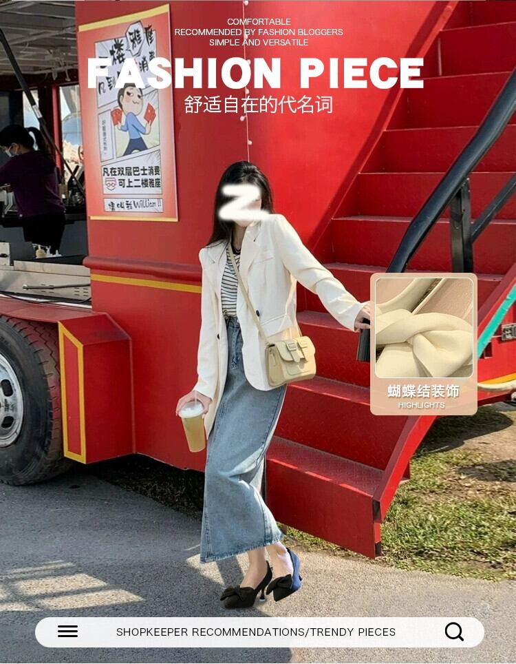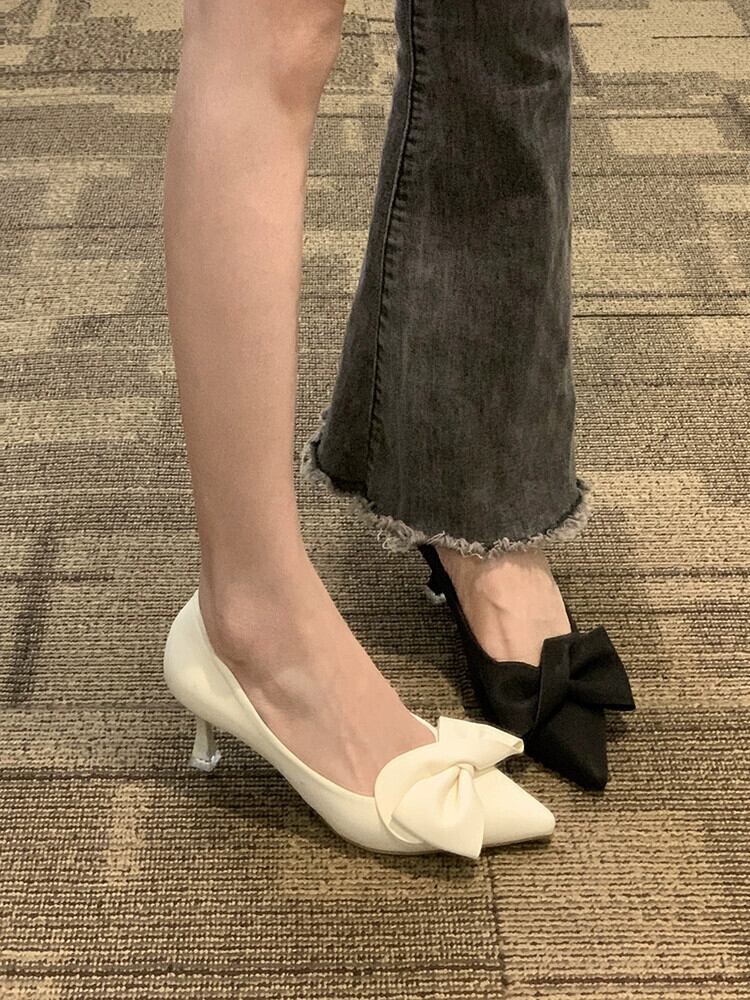 Jiabu 偽ハイヒールの靴の女性の 2023 春の新ポインテッドトゥ小剣ファッションオールマッチフレンチジェントルリボンシングルシューズ スプリング 春物 jxjxf30504898495