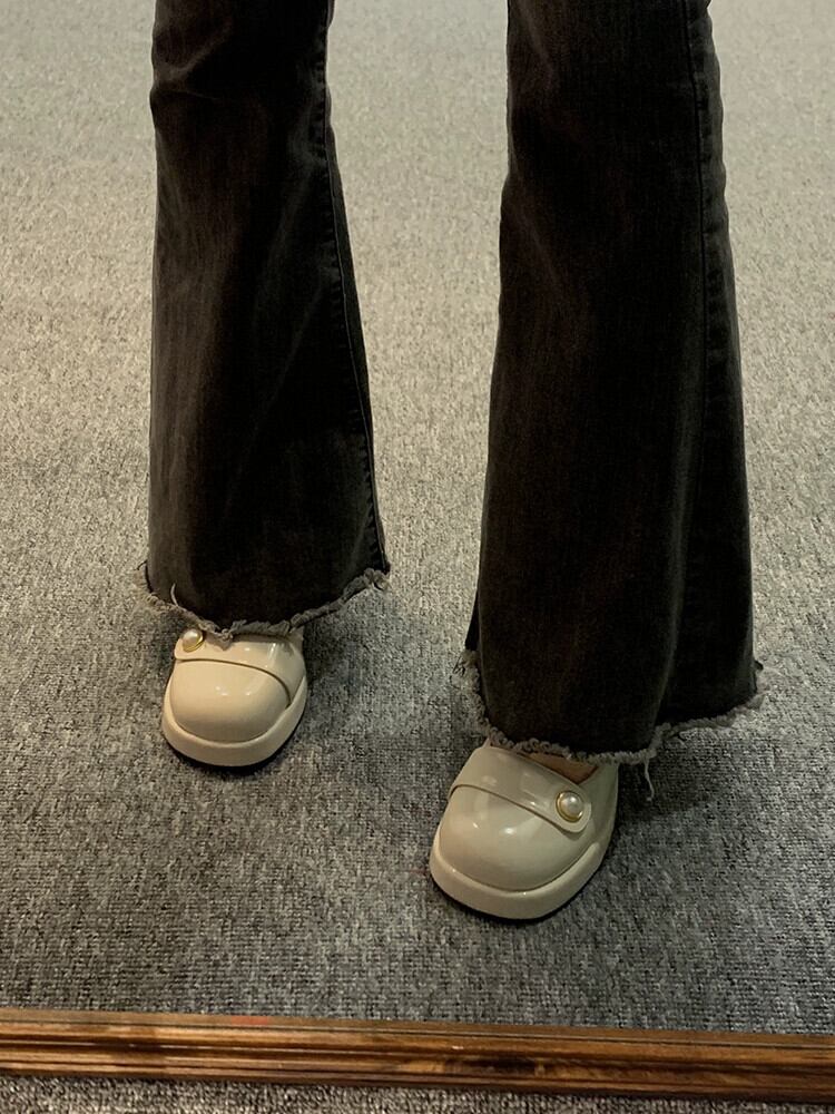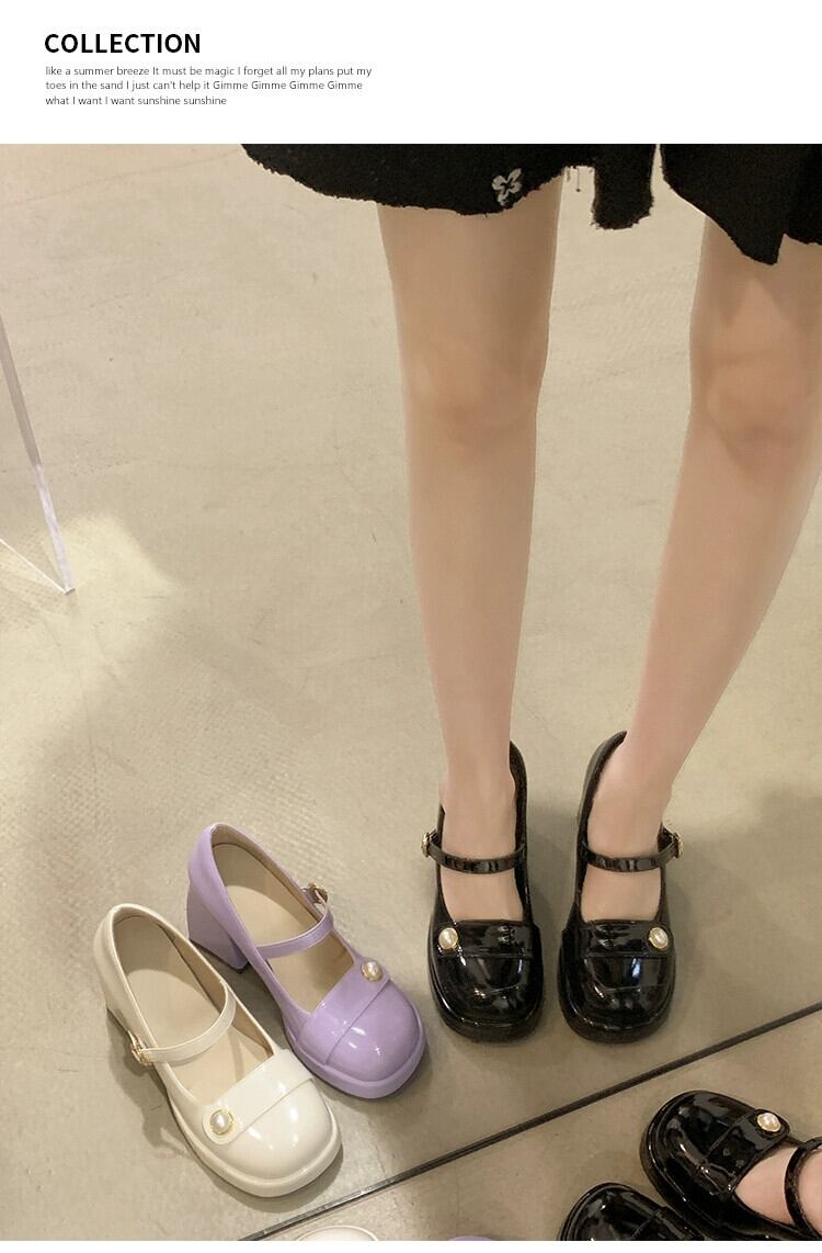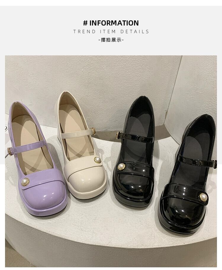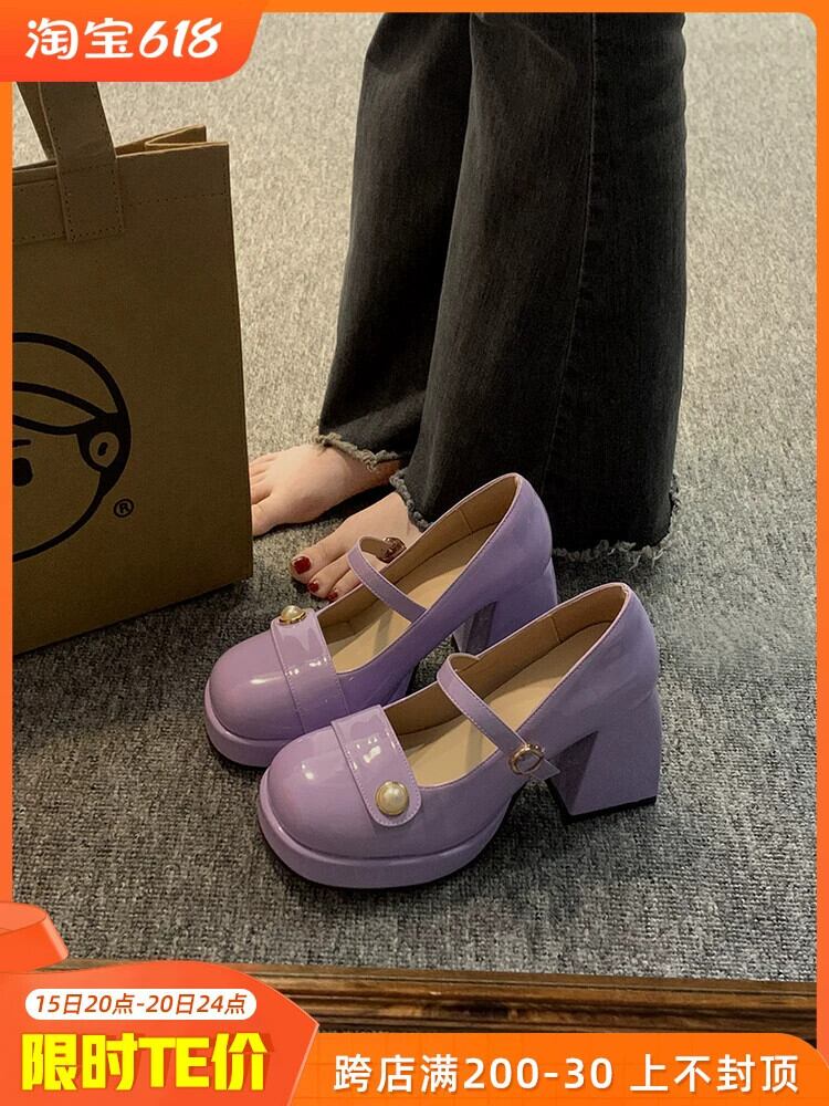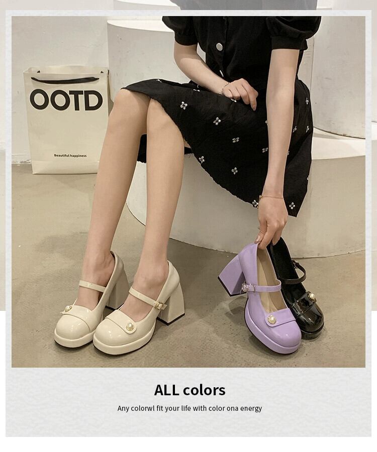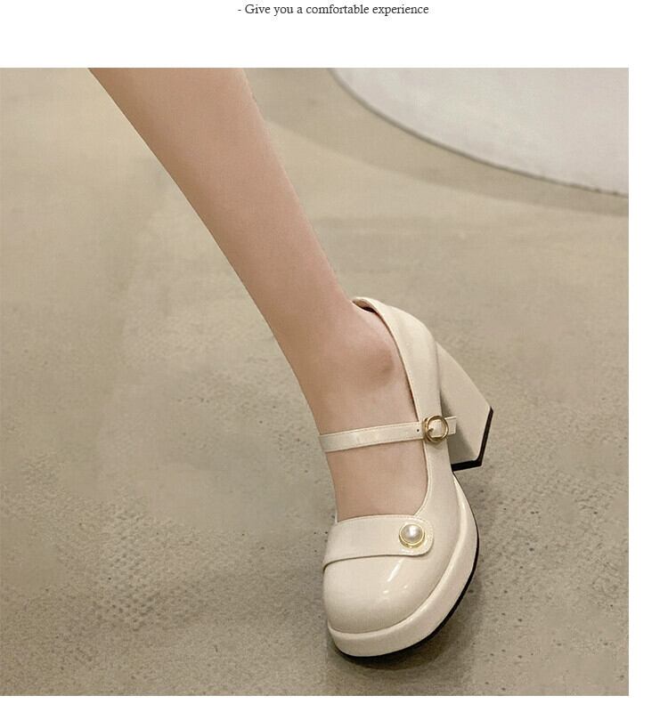 Jiabu 偽メリージェーン靴の女性の 2023 春の新ファッションオールマッチ小さなラウンドトゥハイヒールの革靴トレンド シューズ スプリング 春物 ラウンドトー レザー jxjxf99832413598