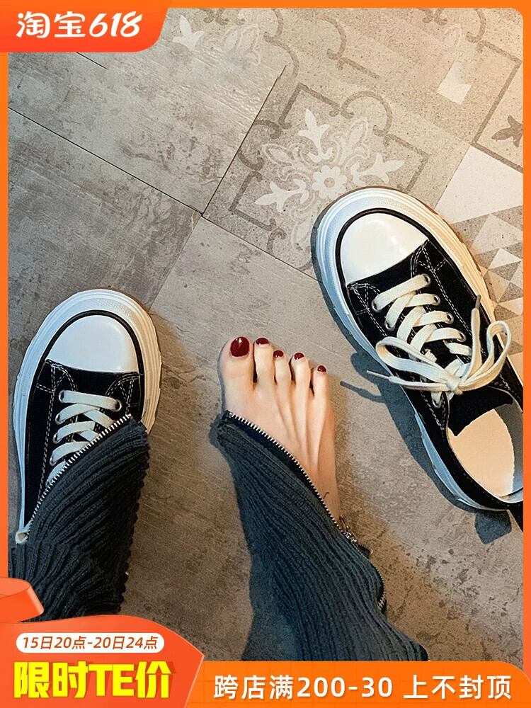 キャンバスシューズ女性の 2023 春の新ファッションストリート撮影レトロオールマッチマフィン厚底ノンスリップスニーカー 靴 スプリング 春物 jxjxf22505487558