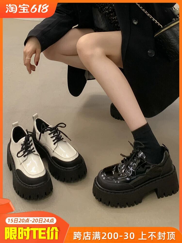 英国スタイルのシングルシューズの女性の 2023 春の新トレンドファッションオールマッチ学生厚いヒールノンスリップレトロレザーシューズ 靴 スプリング 春物 jxjxf76872372253