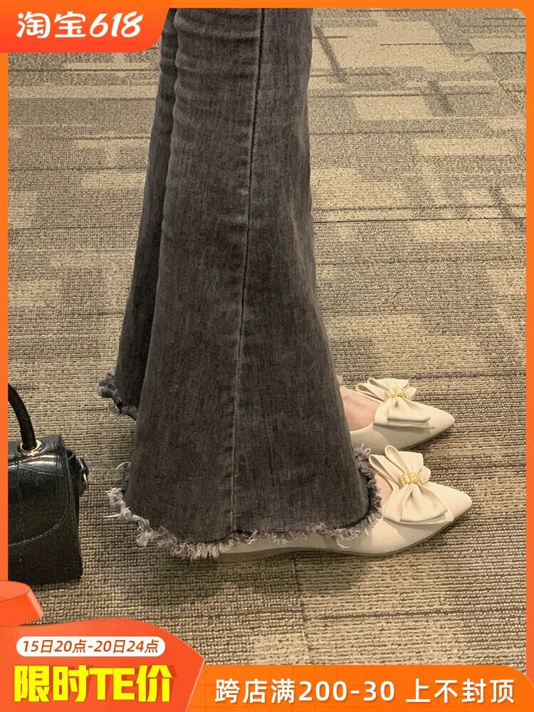 Jiabu フェイクポインテッドトゥシングルシューズ女性の 2023 春の新穏やかなレトロな弓フラットノンスリップ comtable スクープシューズ 靴 リボン スプリング 春物 jxjxf57474624942
