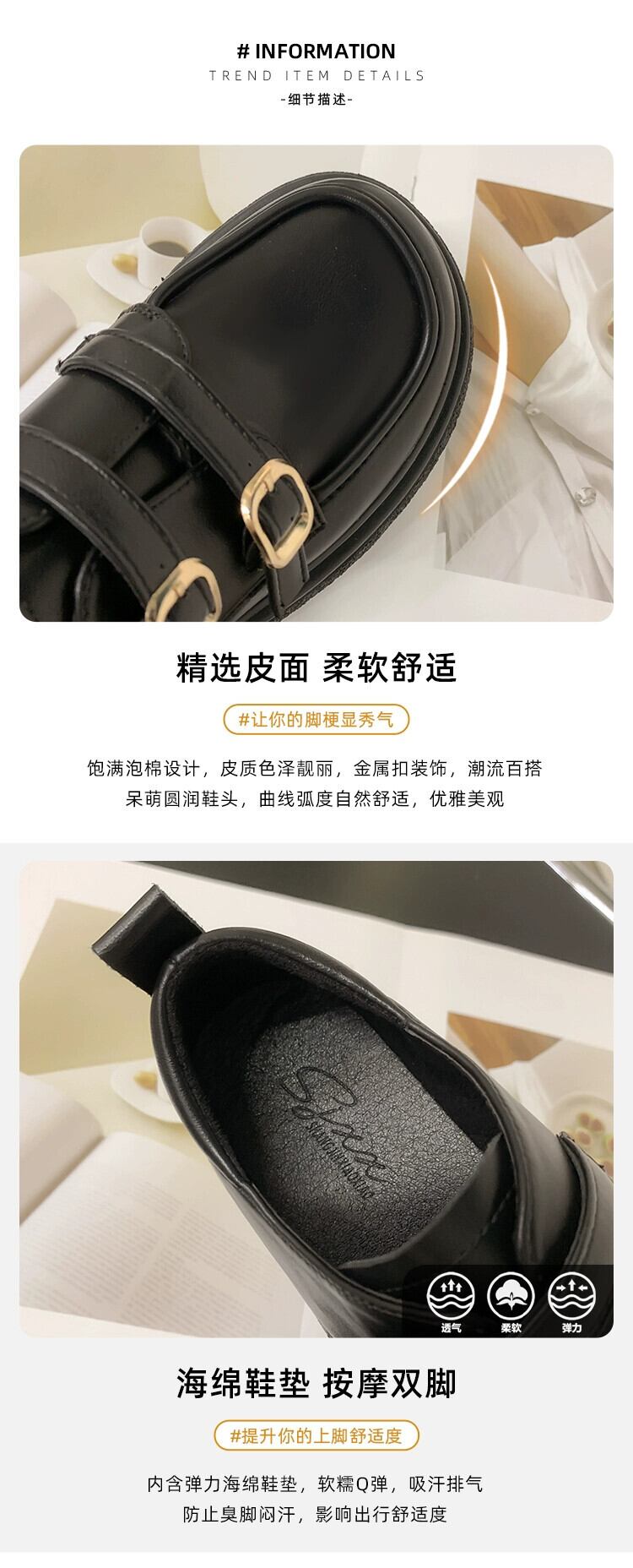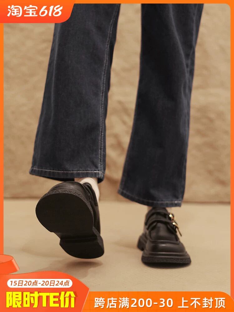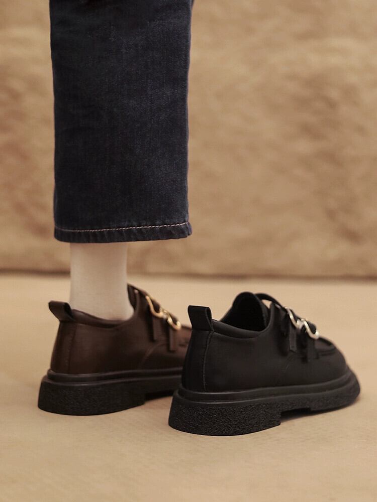 ネットレッド小さな革靴の女性の 2023 春の新ファッションレトロベルトバックルラウンドトゥフラットノンスリップ ese スタイルシングルシューズ スプリング 春物 ラウンドトー レザー ハーネス jxjxf98393982386
