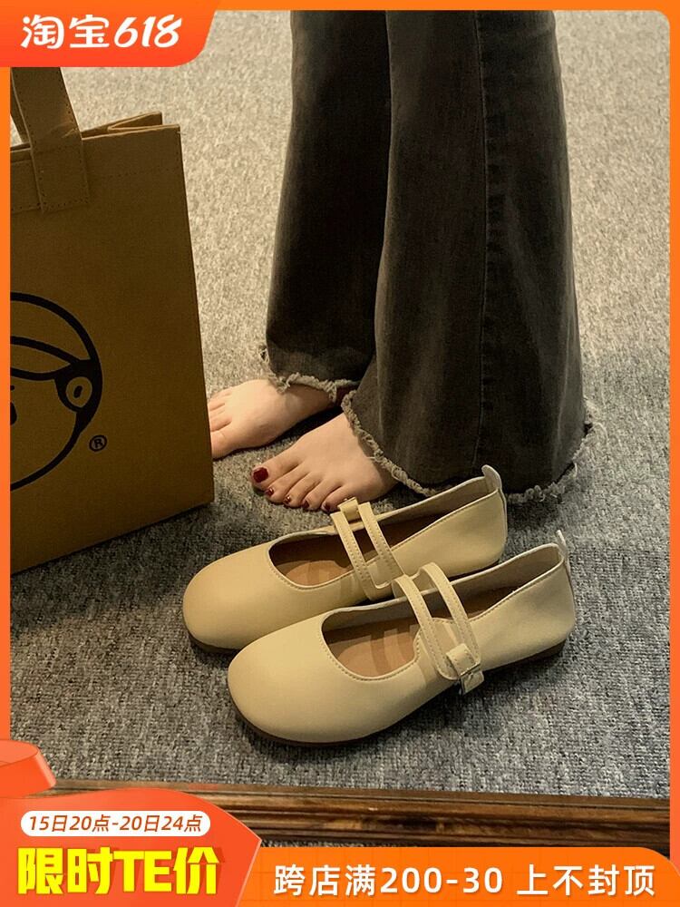 ese シングルシューズの女性の 2023 春の新ファッションオールマッチレトロベルトバックルフラットラウンドトゥメリージェーンシューズトレンド 靴 スプリング 春物 ラウンドトー ハーネス jxjxf38252912408