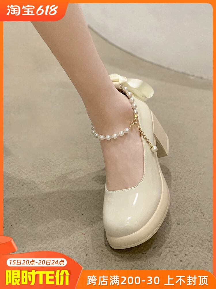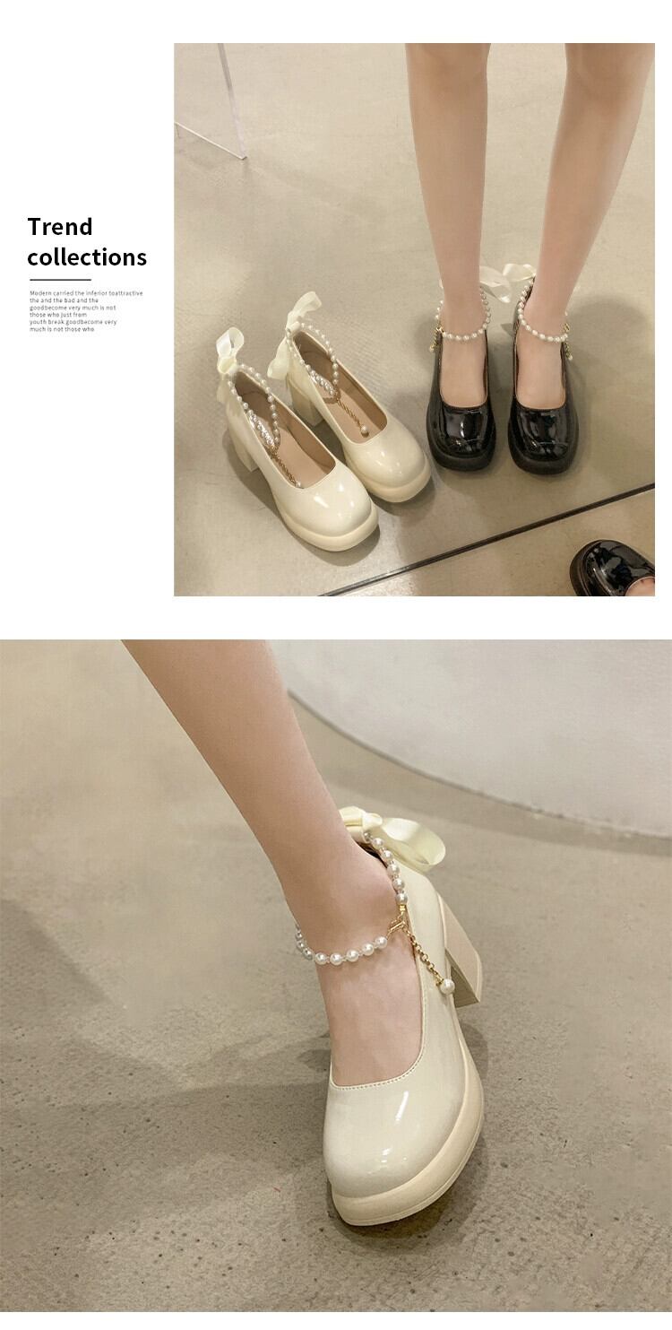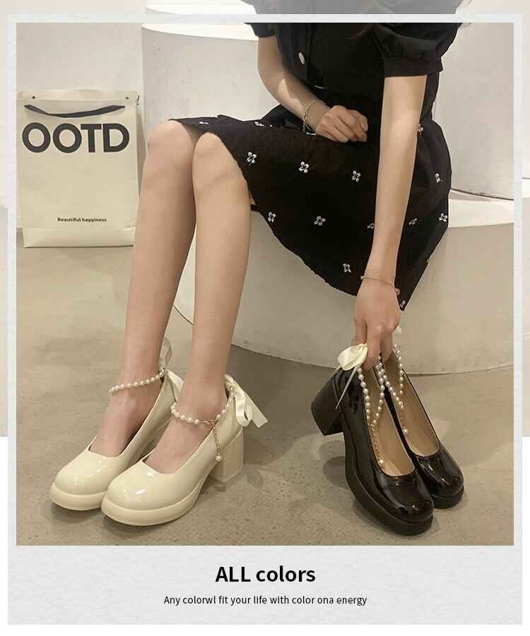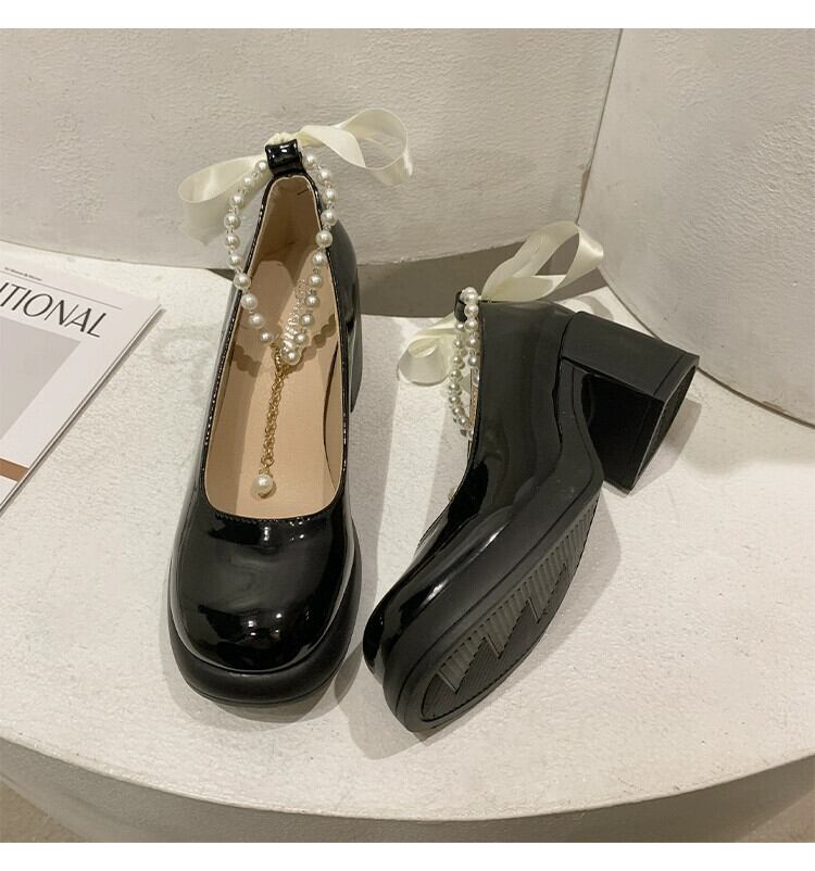 メアリージェーン婦人靴 2023 春の新ファッションオールマッチ eign スタイルパール小さな厚いヒール甘い革の靴 シューズ 大人ガーリー スウィート キュート カジュアル スプリング 春物 レザー 真珠 jxjxf3291121502