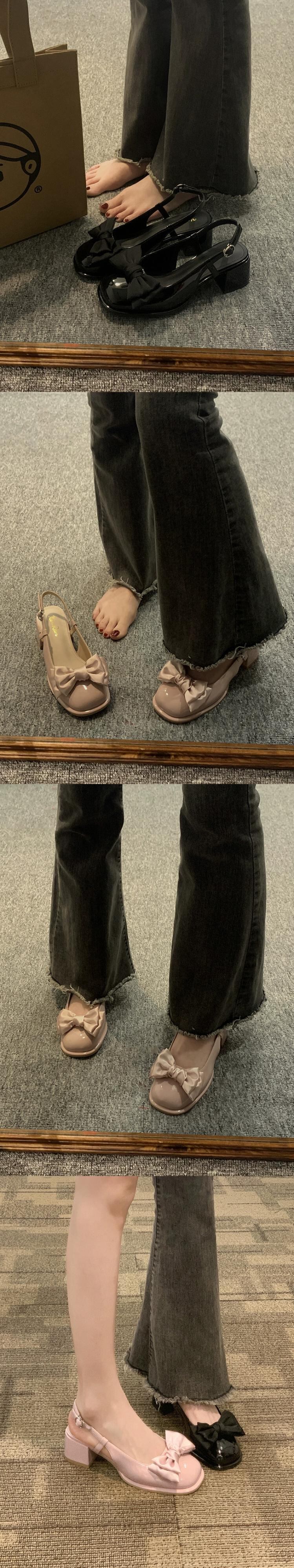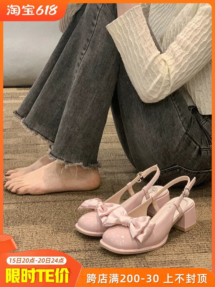 Jiabu 偽包頭サンダル女性の 2023 春の新ファッションちょう結びチャンキーピンクメリージェーンハイヒール リボン 靴 シューズ スプリング 春物 jxjxf11830766765